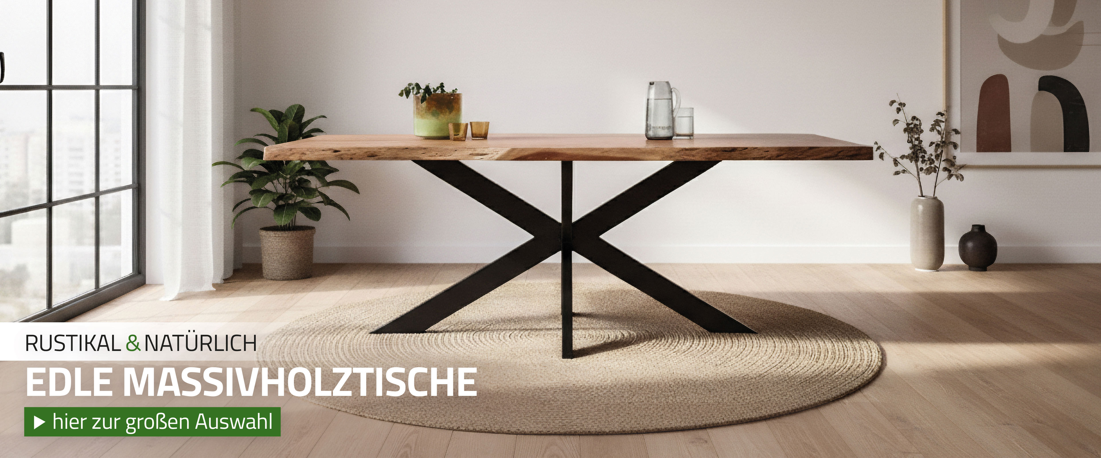 Für die verschiedensten Einrichtungsideen bieten wir Ihnen eine Auswahl an unterschiedlichsten Holzarten. Bei der Wahl der Möbel wird oft eine Kombination mit einem vorhandenen Holzboden Erwägung gezogen. Aber auch ein gewollter Kontrast im Industrial Style ist sehr beliebt. Damit sich jedoch ein harmonisches Wohn-Erscheinungsbild ergibt, sollten die unterschiedlichen Holzarten und Farben mit Bedacht gewählt und aufeinander abgestimmt werden.