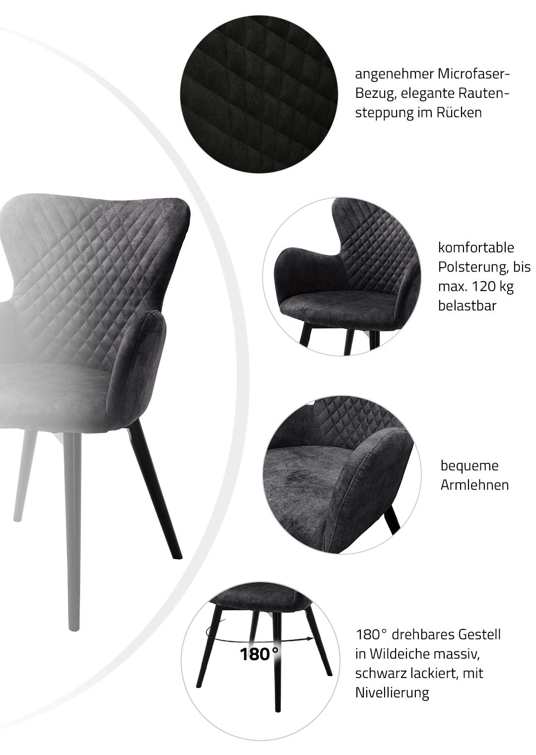 Armlehnstuhl anthrazit - Drehstuhl 180 Grad - Wildeiche - SARANDER
