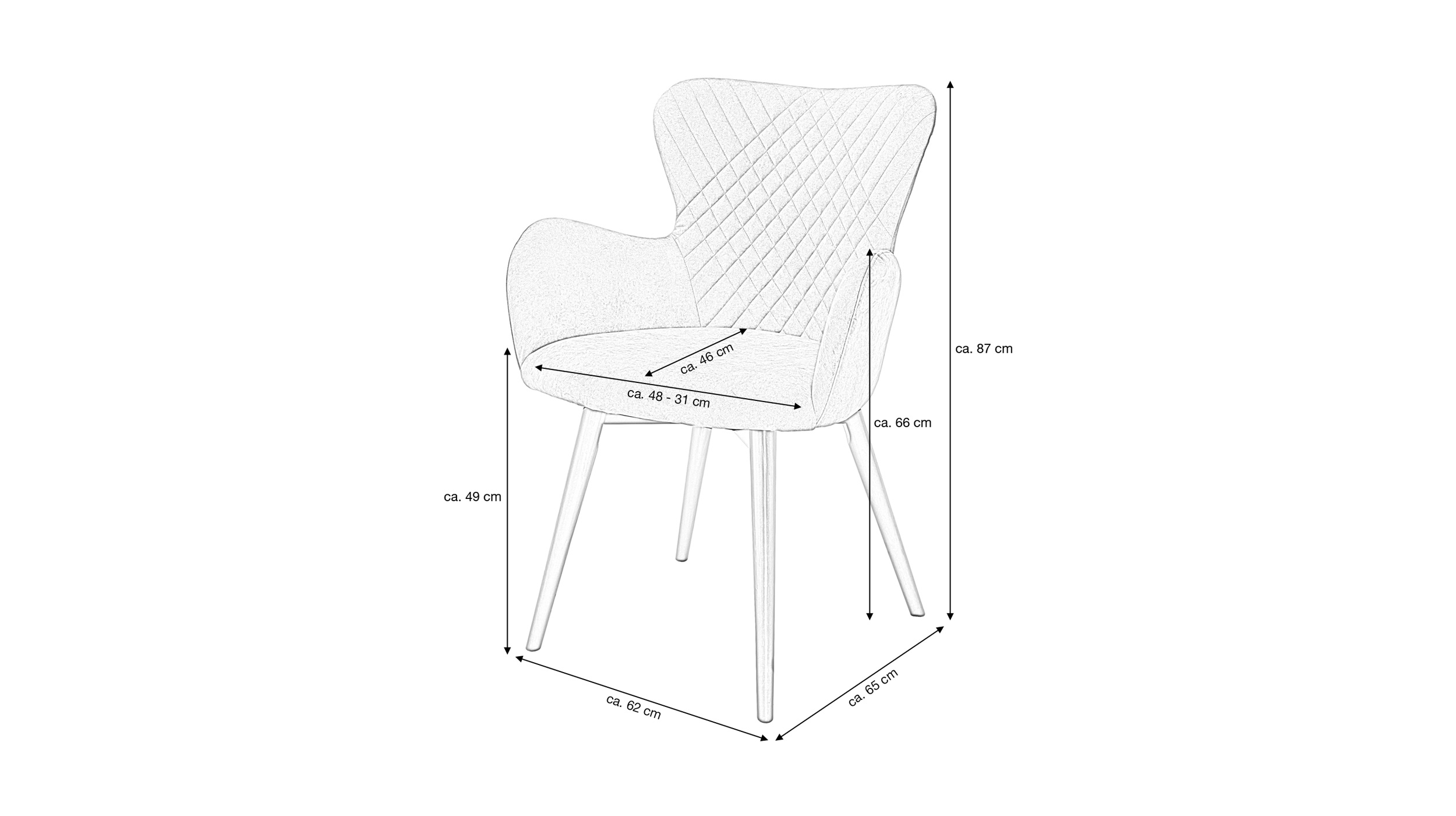 - Armlehnenhöhe ca. 66 cm - abfallend nach hinten auf ca. 61 cm