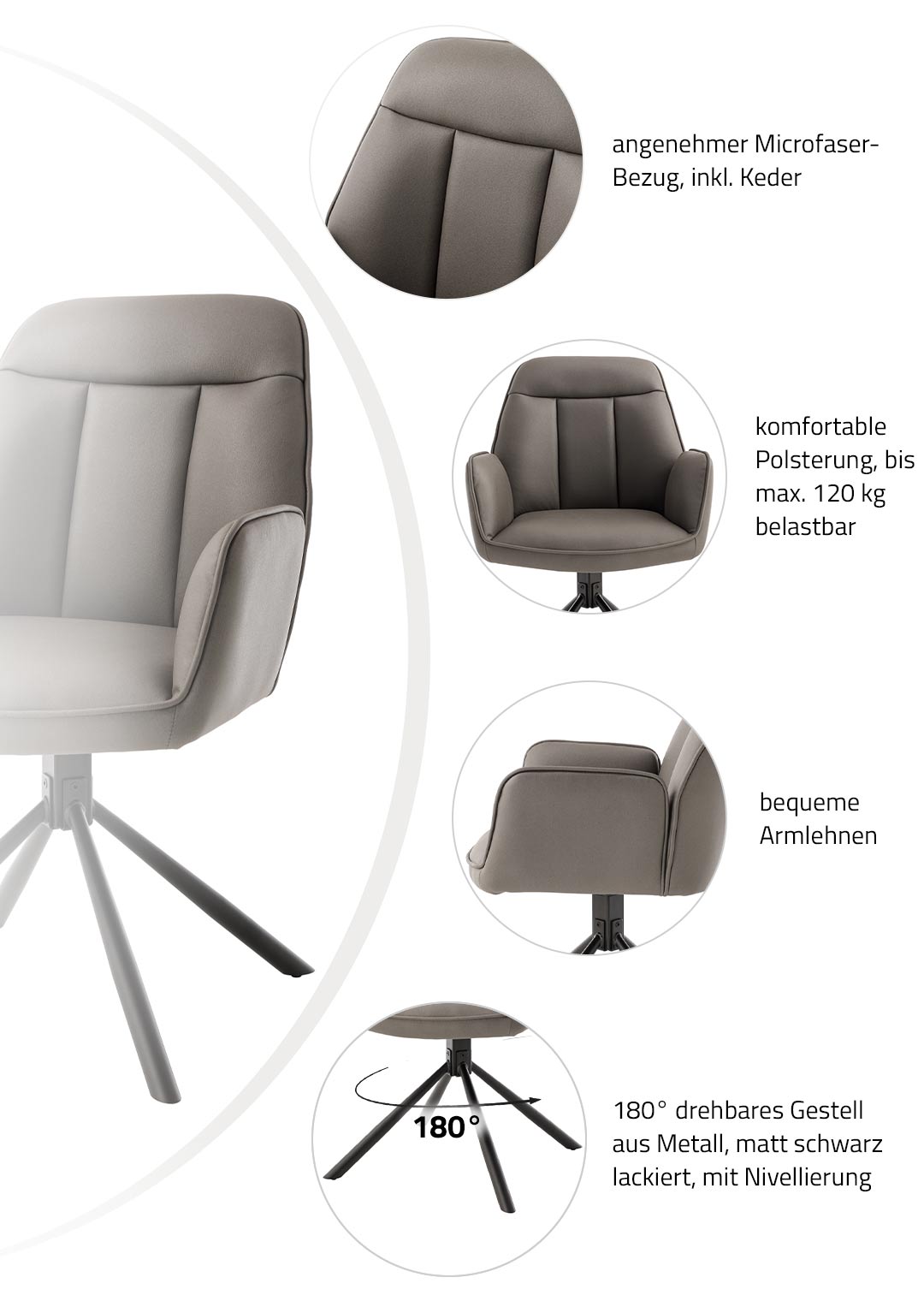 Armlehnstuhl anthrazit Drehstuhl Microfaser - RAFAELA