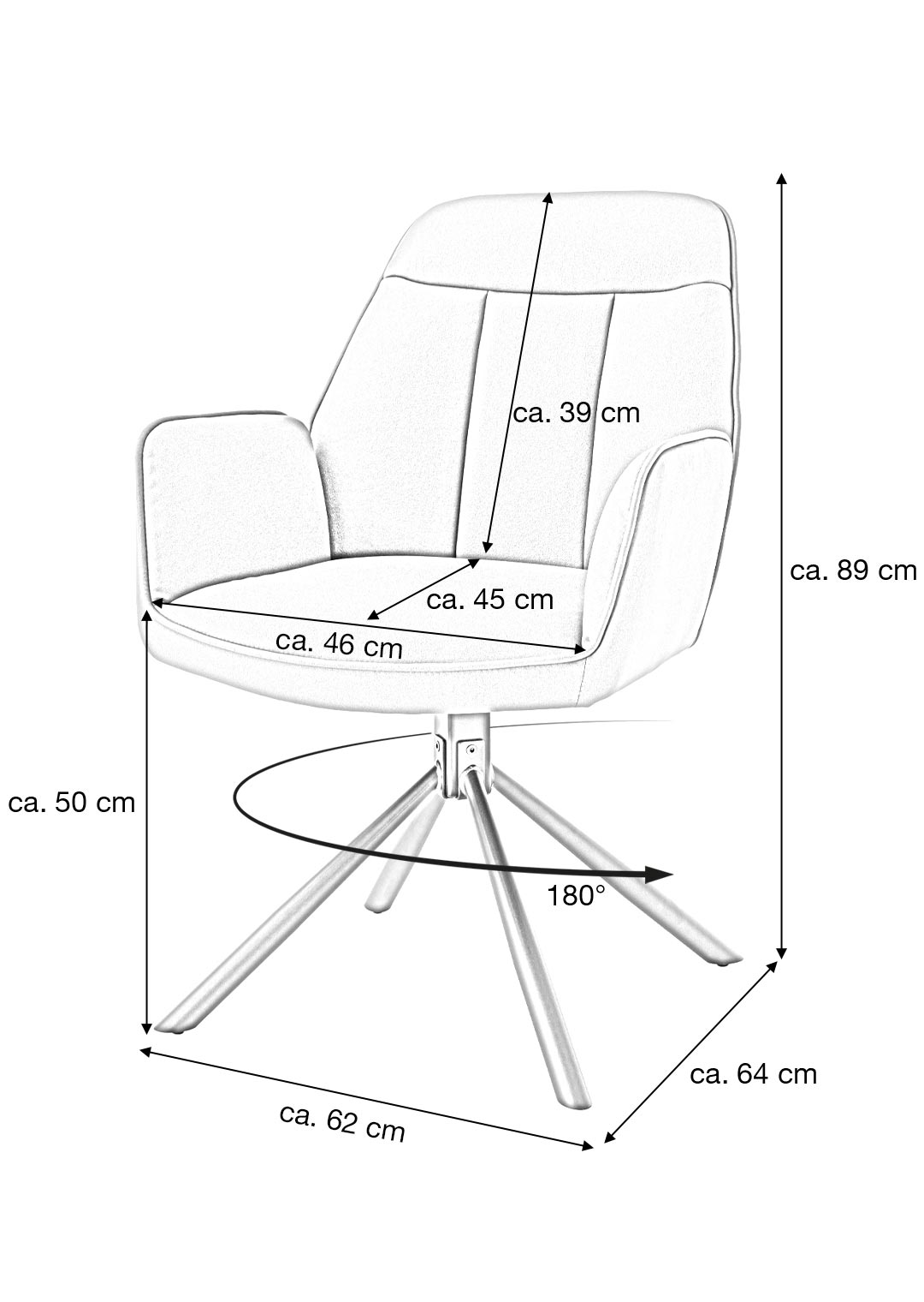 Gleichzeitig erleben Sie echten Sitzkomfort mit dem Armlehnstuhl RAFAELA. Der angenehm gepolsterte Sitz sorgt mit einer Sitzbreite von ca. 46 cm und einer Sitztiefe von ca. 45 cm auch bei längerem Sitzen für eine angenehme, entspannte Sitzposition. Zusätzlichen Sitzkomfort bieten die hohen, ergonomisch gestalteten Armlehnen. Der Drehstuhl ist um 180 Grad drehbar und kehrt dank der Nivellierung automatisch wieder in seine Ausgangsposition zurück. So genießen Sie mit dem Armlehnstuhl RAFAELA maximale Flexibilität und Bequemlichkeit.