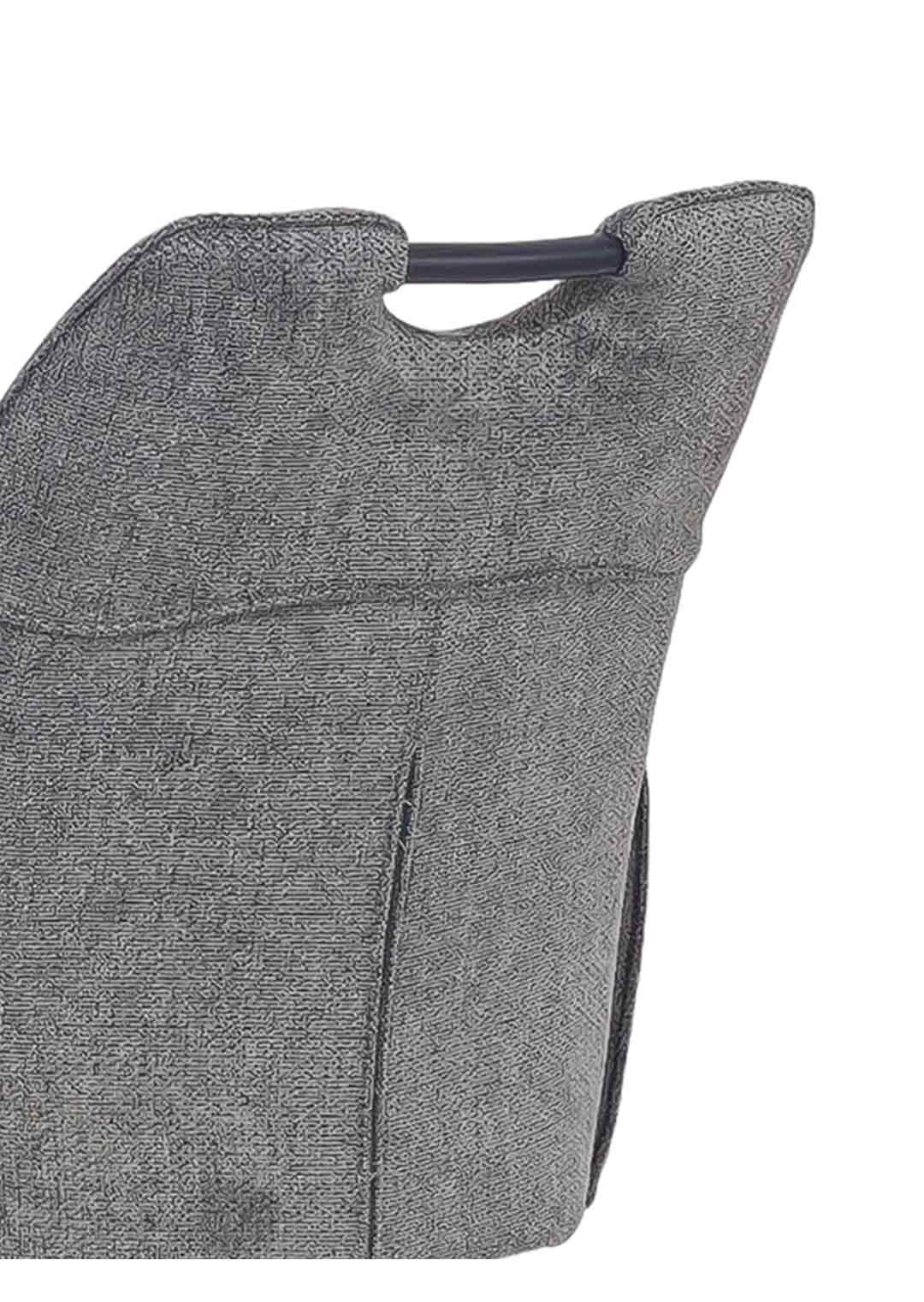 Der Armlehnstuhl CARINA verkörpert Nostalgie und Vintage-Flair in einer modernen Form und wird so zu einem zeitlosen Klassiker. Der robuste Bezug aus dunkelgrauem Webstoff birgt eine angenehme Haptik und verleiht dem Stuhl eine gemütliche, wohnliche Ausstrahlung, während das schwarz matt pulverbeschichtete 4-Fuß-Gestell aus Metall für Stabilität und einen modernen Kontrast sorgt. Die markante Griffmulde an der Rückenlehne, mit integriertem Metallgriff in Schwarz, setzt einen raffinierten Akzent und macht das Verschieben besonders einfach, ohne Fingerabdrücke auf dem Stoff zu hinterlassen.
