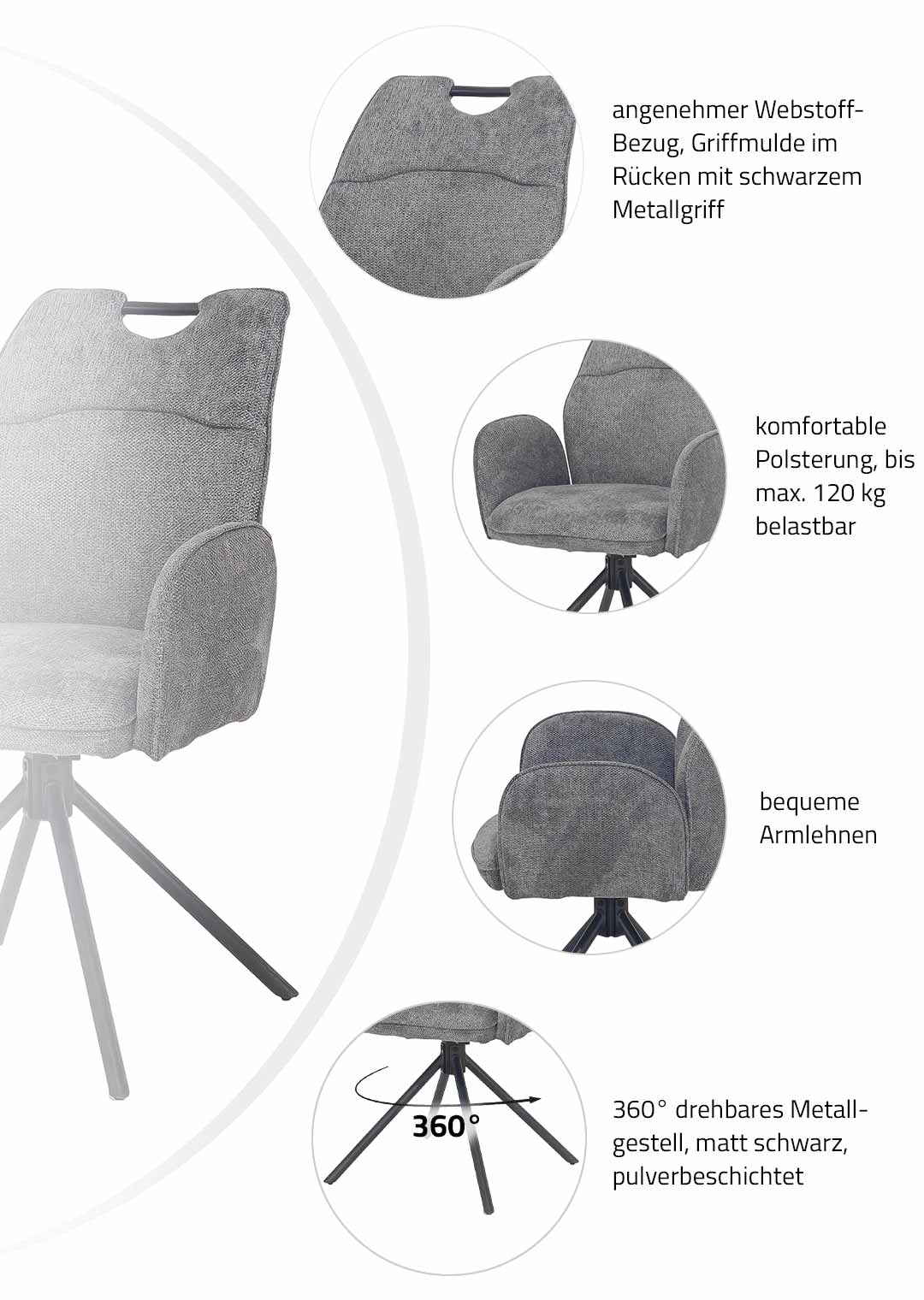 Armlehnstuhl Webstoff - 360° drehbar - CARINA