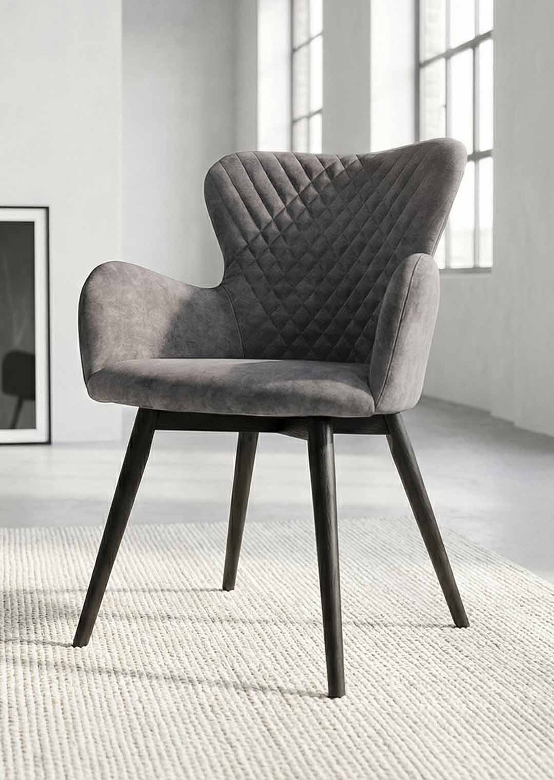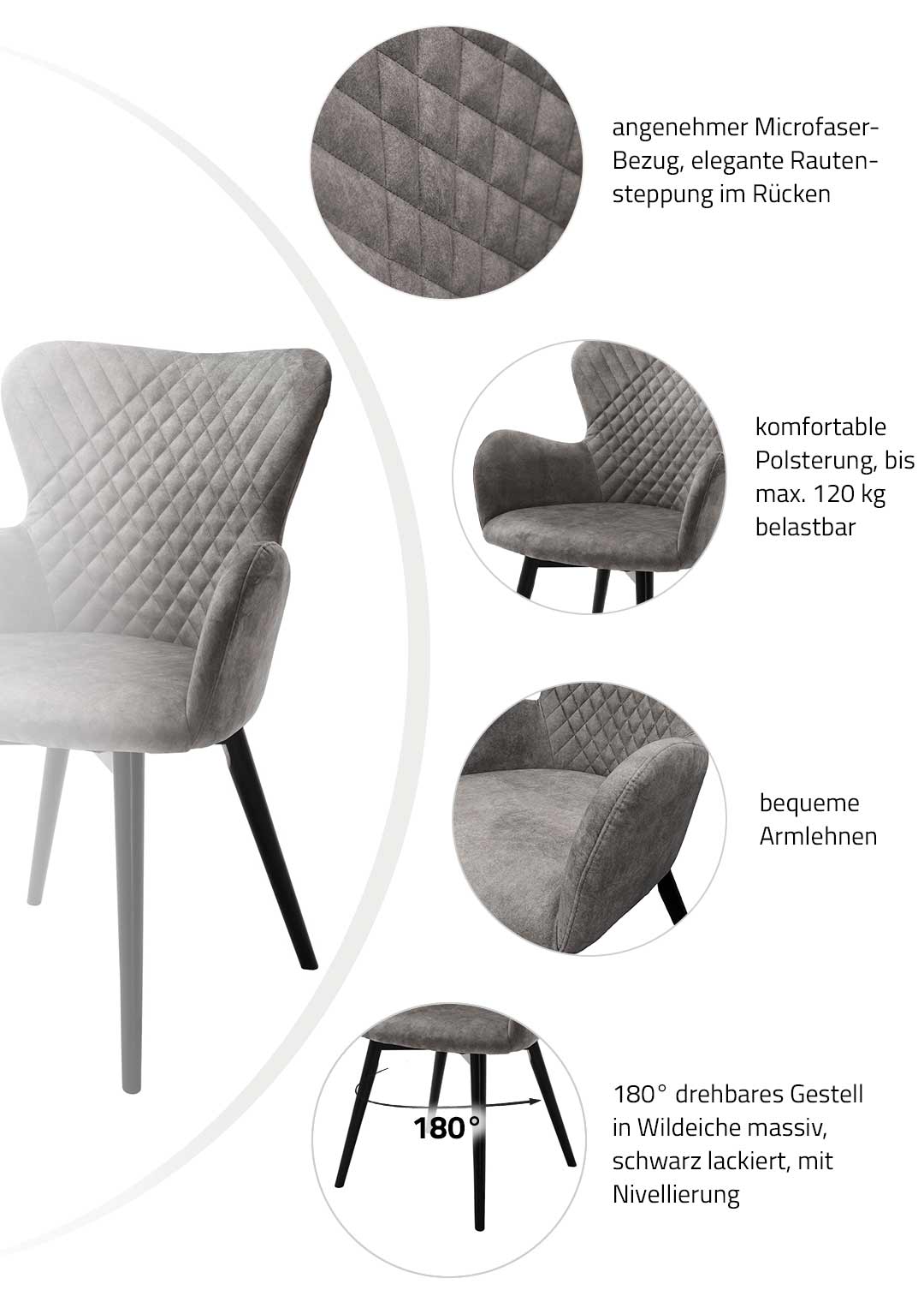 Armlehnstuhl grau - Drehstuhl 180 Grad - Wildeiche - SARANDER