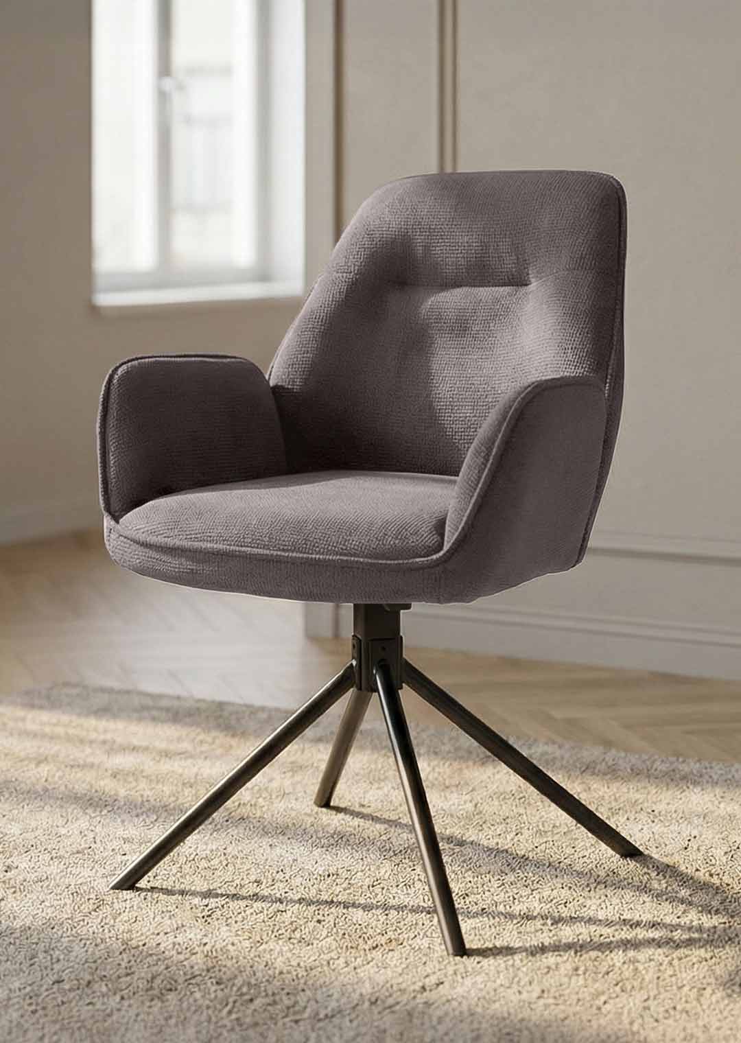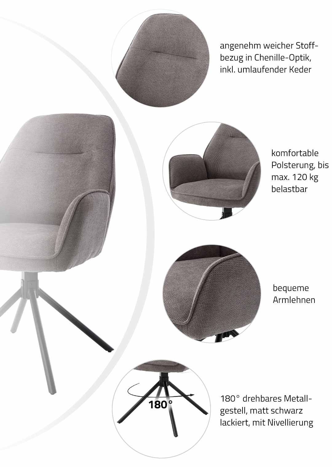 Armlehnstuhl grau Drehstuhl Chenille Optik - MALITA