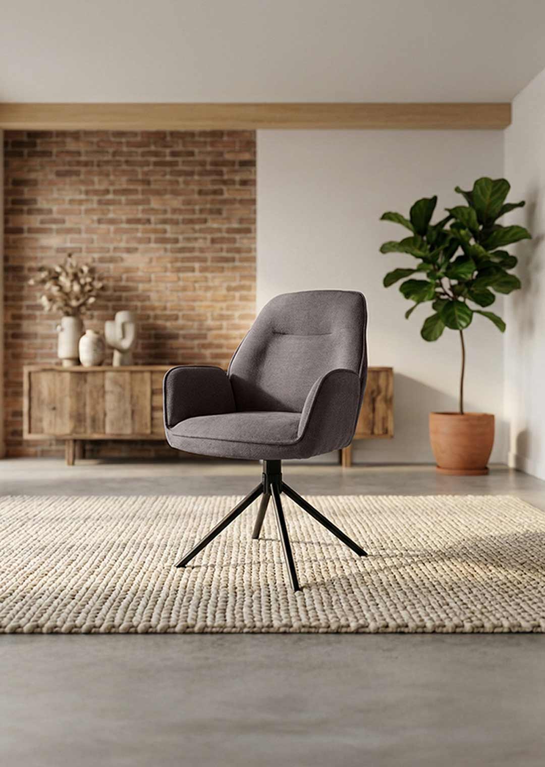 Neben dem ansprechenden Äußeren erleben Sie auf dem Armlehnstuhl MALITA täglichen Sitzkomfort. Die beiden angenehm hohen Armlehnen bieten ergonomischen Halt. Zudem laden sie dazu ein, die Arme bequem abzulegen. Dank der Drehfunktion ist der Armlehnstuhl um 180 Grad drehbar und garantiert maximale Bewegungsfreiheit, ohne aufstehen zu müssen. Und mit der praktischen Nivellierung kehrt der Stuhl nach jeder Drehung automatisch in die Ausgangsposition zurück. Egal, ob bei einem ausgedehnten Abendessen mit Freunden oder einem entspannten Abend zu zweit - der Armlehnstuhl MALITA überzeugt durch seine Mischung aus stilvollem Design, Sitzkomfort und Flexibilität.