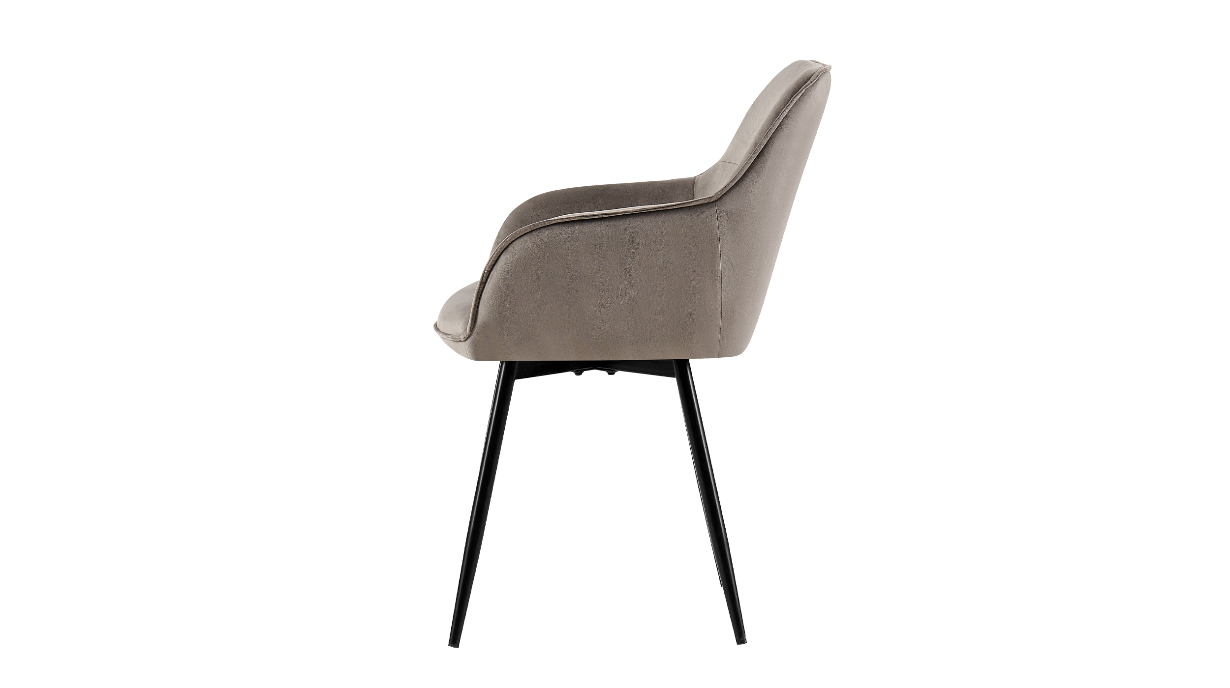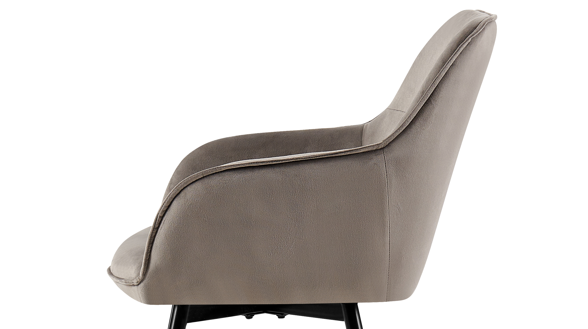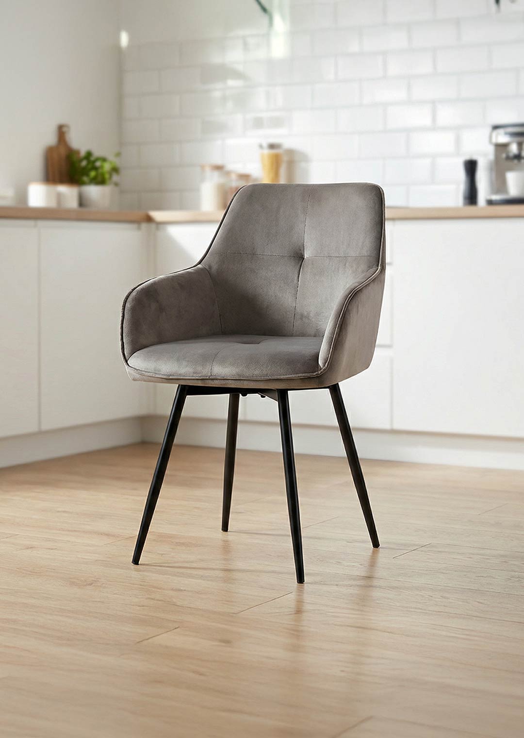 Mit dem Armlehnstuhl ALMA gelingt das mühelos. Der Samt-Bezug verleiht dem Armlehnstuhl eine stilvolle Optik und bringt in Grau pure Eleganz an den Esstisch. Gleichzeitig fühlt sich der Bezug angenehm weich auf der Haut an. Weiche Kanten und die Steppung im Rücken und auf der Sitzfläche verstärken die wohnliche, äußere Erscheinung des Stuhls. Das schlanke, matt schwarze Metallgestell ist pulverbeschichtet und sorgt sowohl für Stabilität, als auch eine moderne Leichtigkeit.