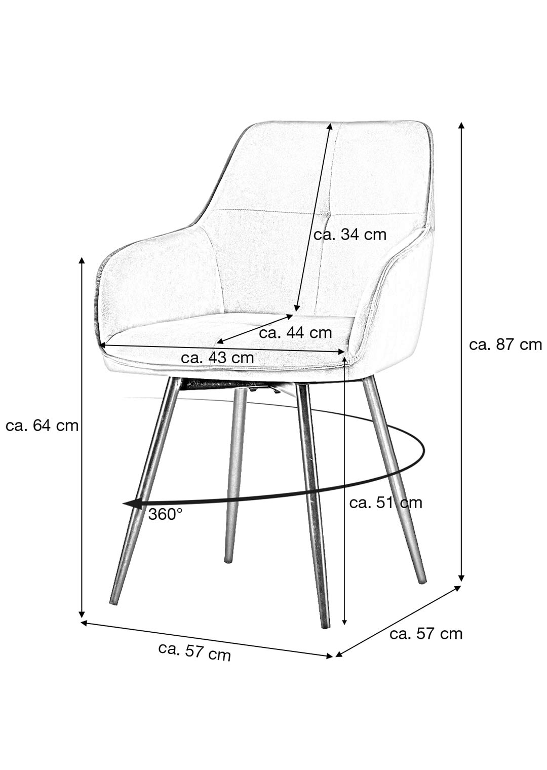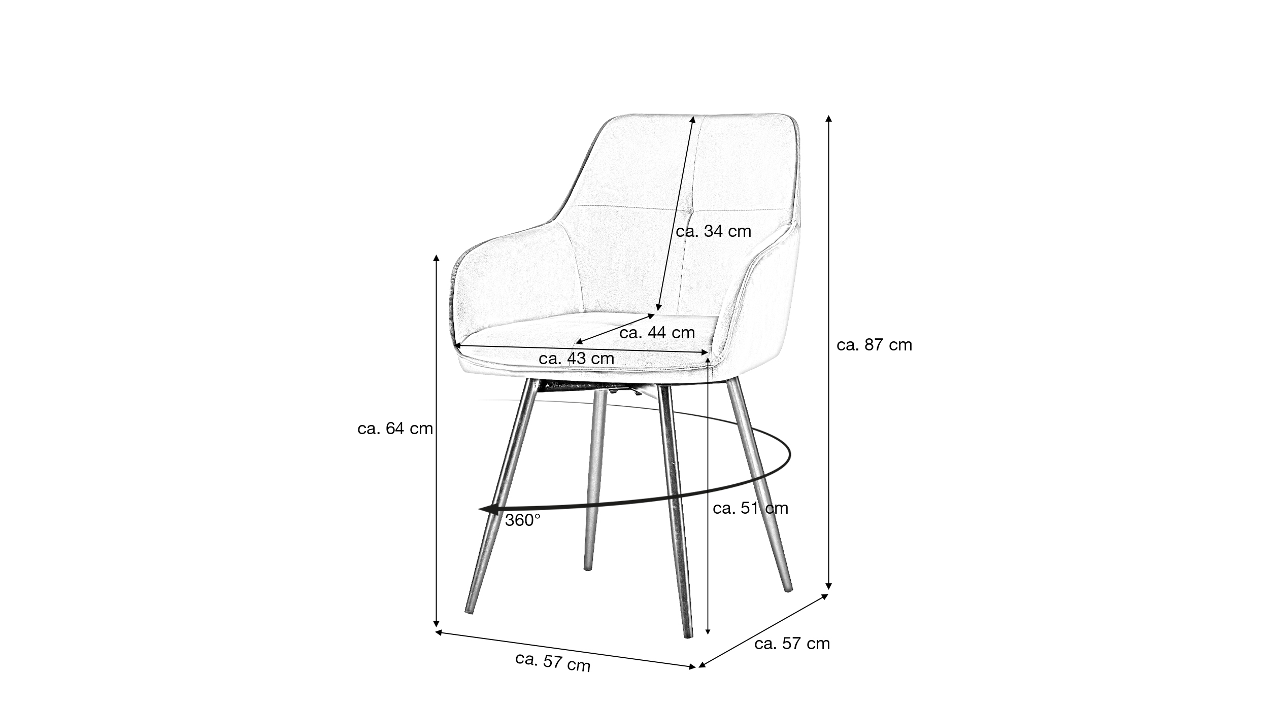 Neben der äußeren Erscheinung überzeugt der Armlehnstuhl ALMA mit seinem ergonomischen Design, das zum Verweilen einlädt. 2 hohe, angenehm geformte Armlehnen bieten eine bequeme Unterstützung der Arme und Schultern und tragen auch bei längeren Aufenthalten am Esstisch zu einer entspannten Sitzhaltung bei. So bleiben auch ausgedehnte Essen oder gesellige Abende mit Freunden am Esstisch gemütlich. Dank der großzügigen Sitzfläche und einer idealen Sitzhöhe von ca. 51 cm sitzen Sie dabei stets bequem. Mit der 360° Drehfunktion garantiert der Drehstuhl zudem Bewegungsfreiheit und passt sich flexibel jeder Situation an. Er regt damit zu Gesprächen am Esstisch ein. ALMA ist eine komfortable und elegante Wahl für jedes Zuhause.