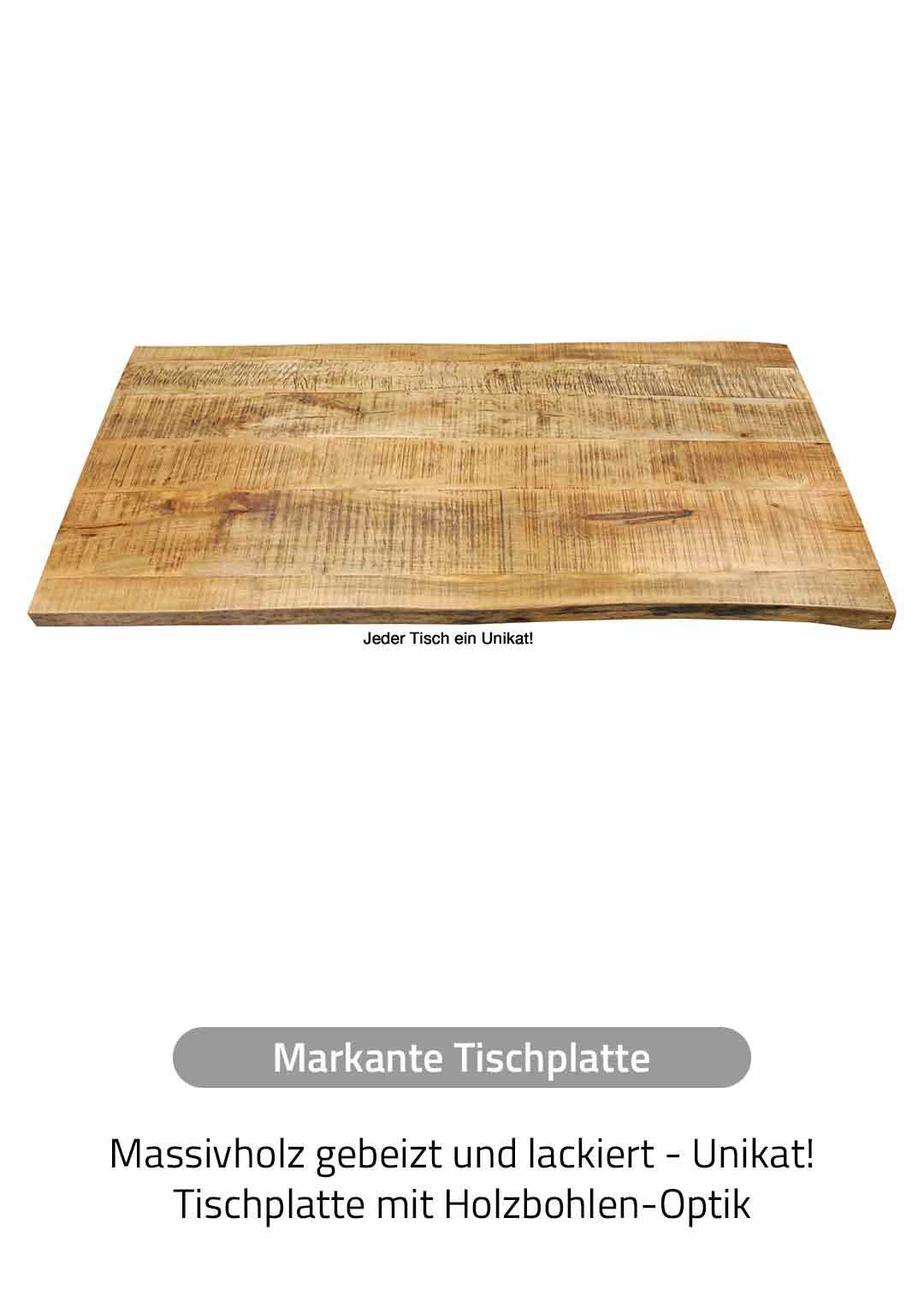 | Eigenschaften | Tischbeine X-Form, echte Baumkante, Naturprodukt mit natürlichen Farbabweichungen und Unebenheiten |