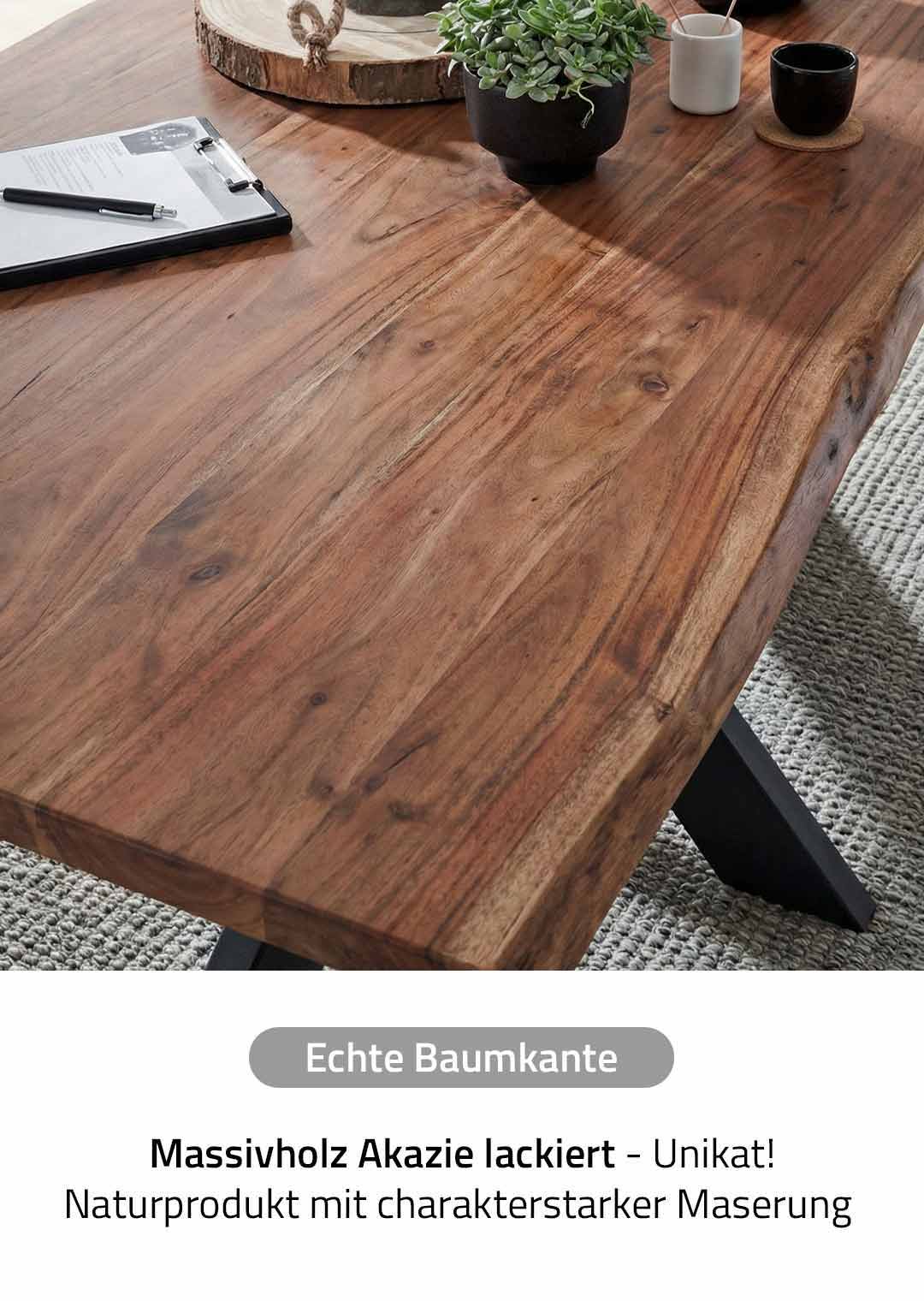 Baumkantentisch 200 cm Akazie lackiert massiv - TIMY
