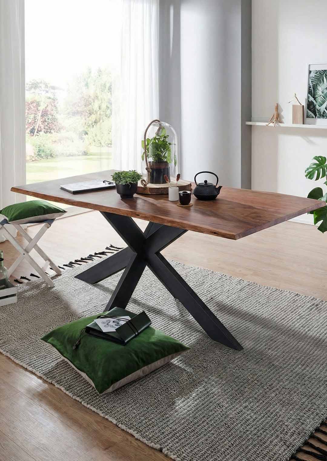 Entdecken Sie die natürliche Schönheit und Qualität eines Esstisches aus Akazienholz mit Baumkante – handgefertigt, nachhaltig und exklusiv bei MASSIVART.