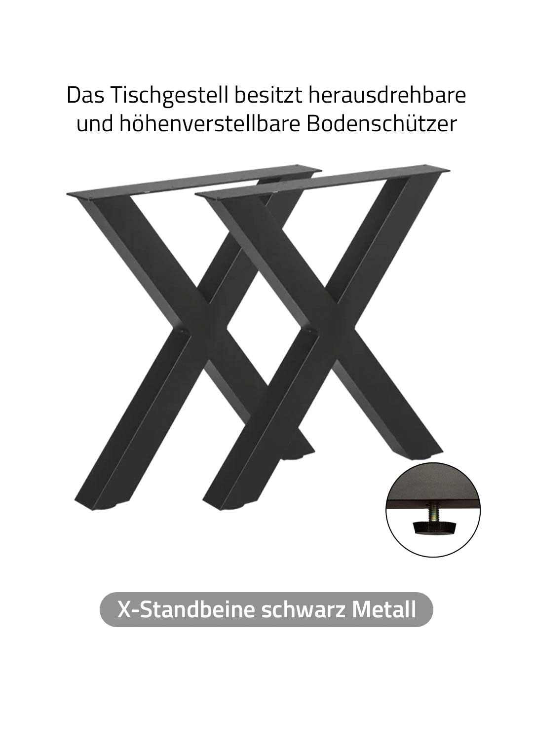 | Bestandteile | 1 Tischplatte in Akazie Massivholz lackiert, 2 X-Gestelle in schwarz Metall |