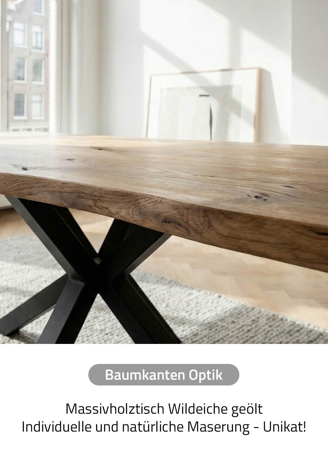 Ein Tisch aus massiver Wildeiche bringt die Natur in Ihr Zuhause – authentisch, elegant und voller Charakter. Mit einem Baumkantentisch aus Wildeiche entscheiden Sie sich für ein Möbelstück, das Generationen überdauern kann und dabei stets stilvoll bleibt.