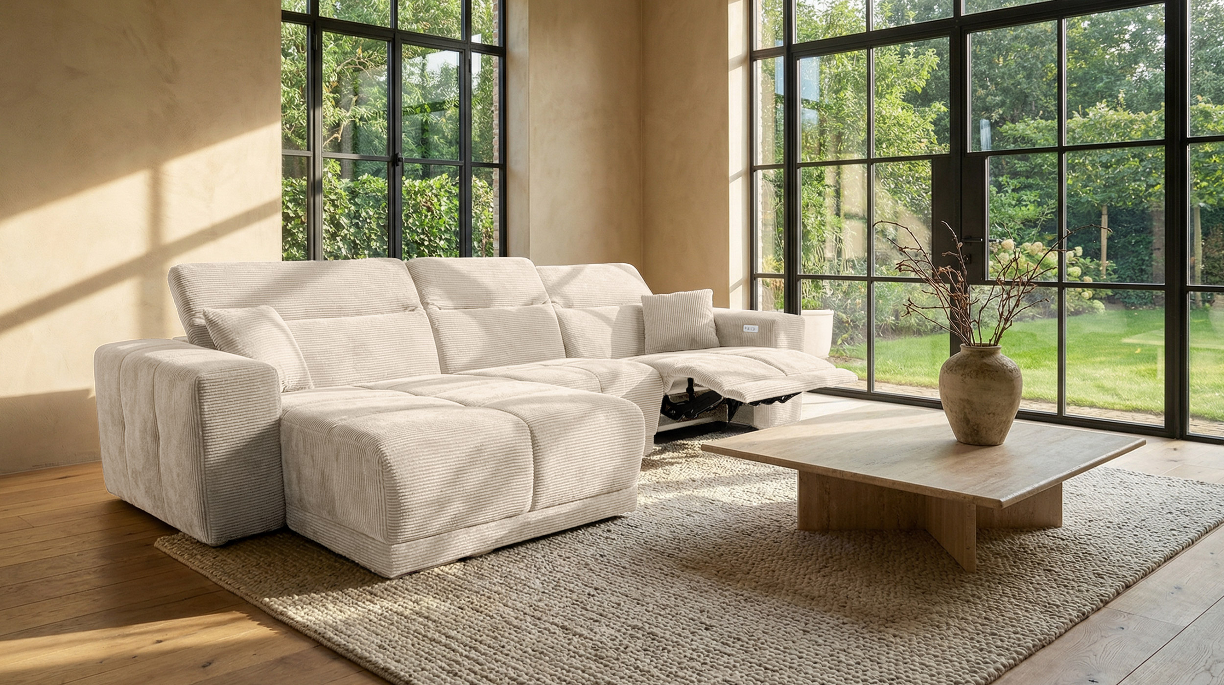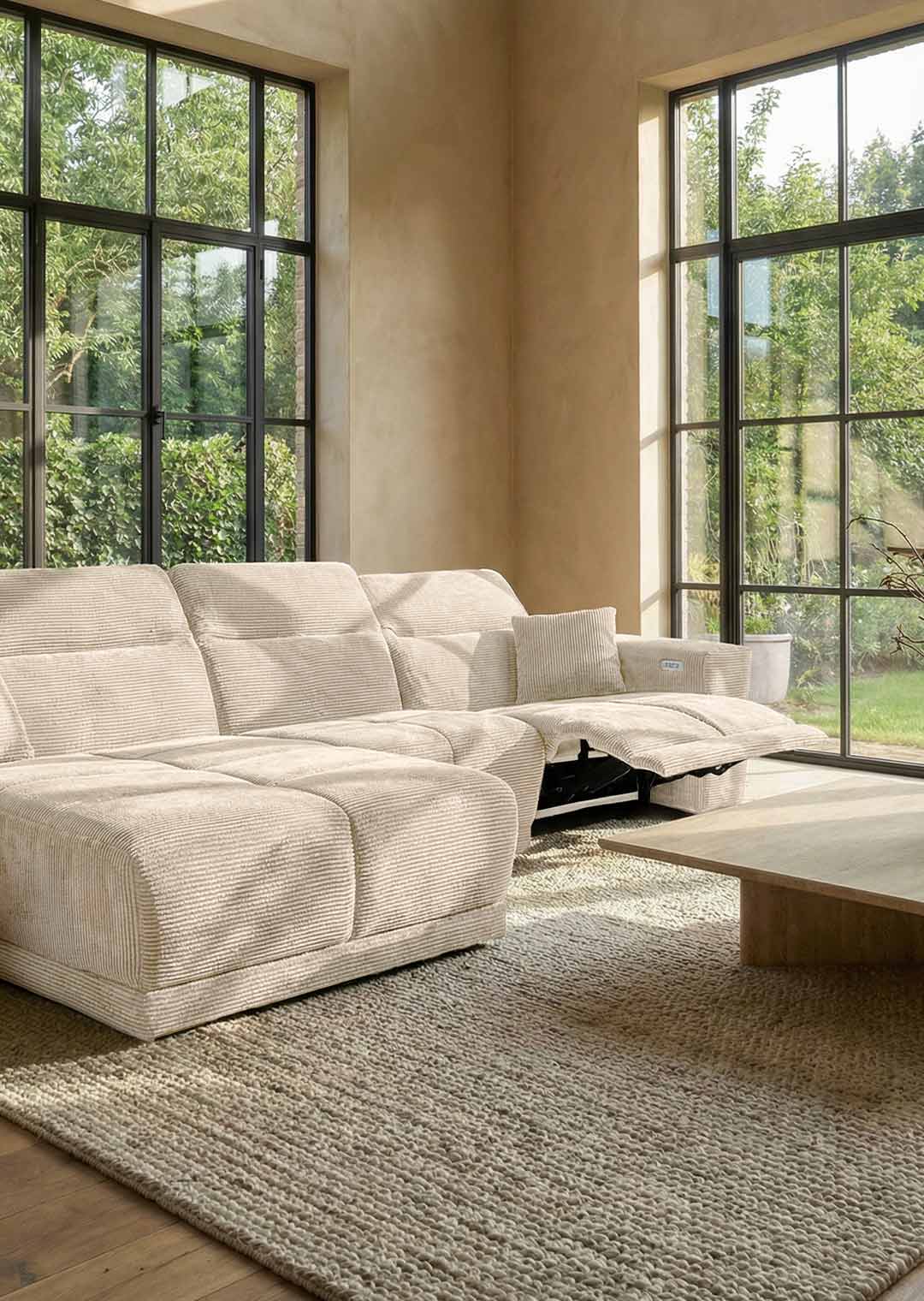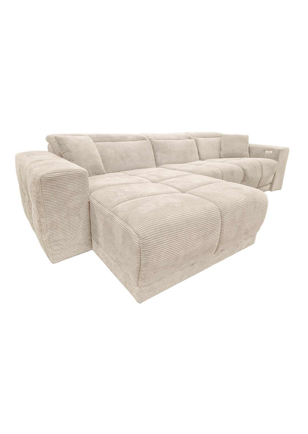 Ecksofa Cord beige 302 cm - elektrische Relaxfunktion - TONI