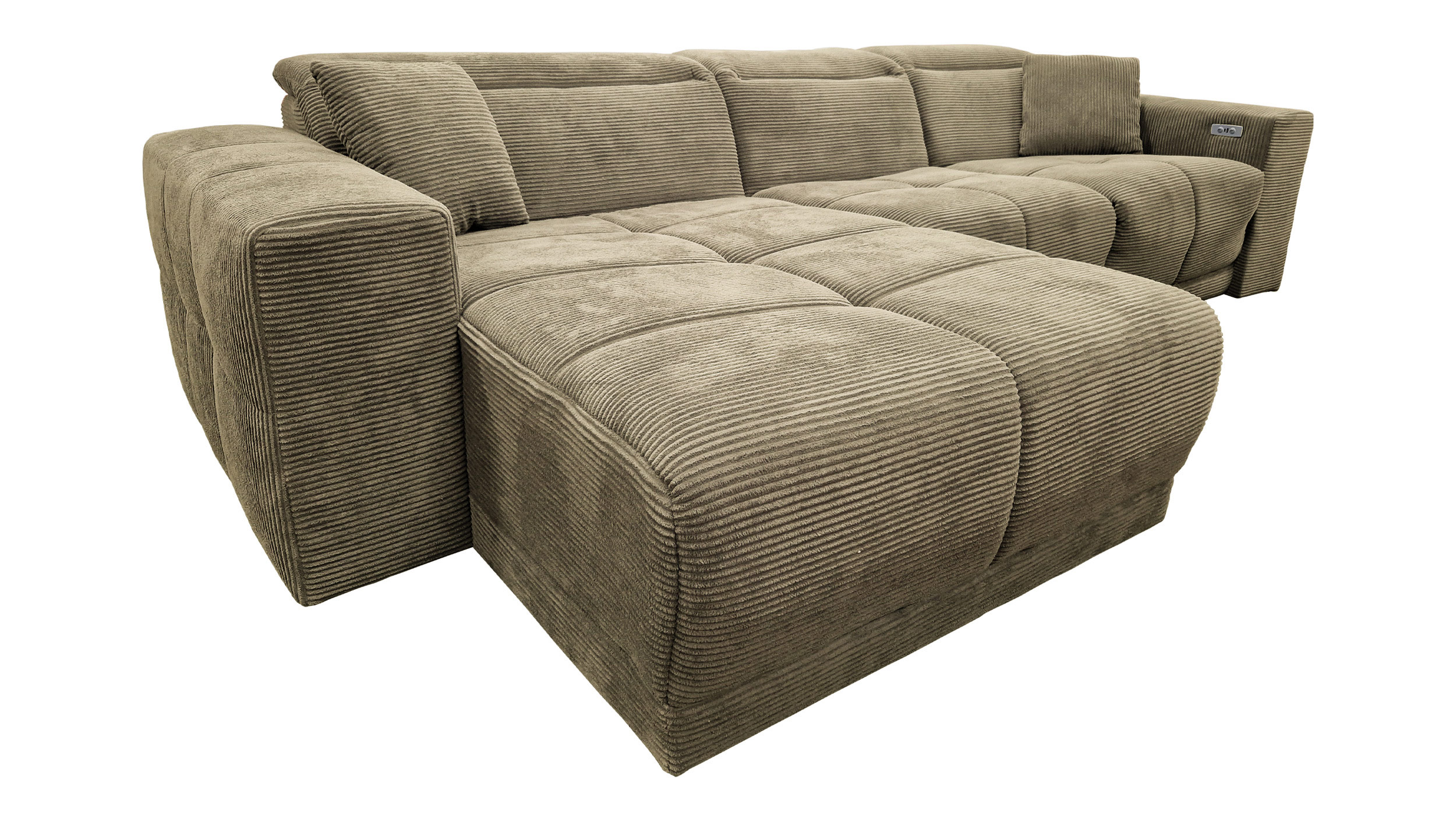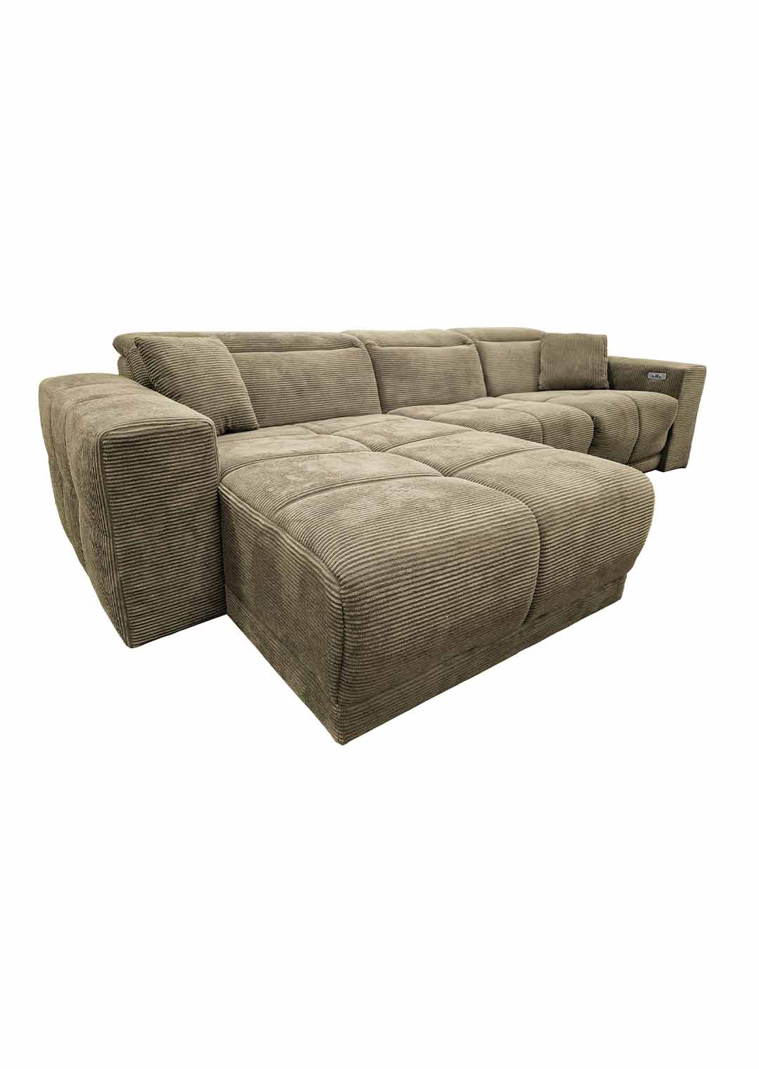 Ecksofa Cord grün 302 cm - elektrische Relaxfunktion - TONI