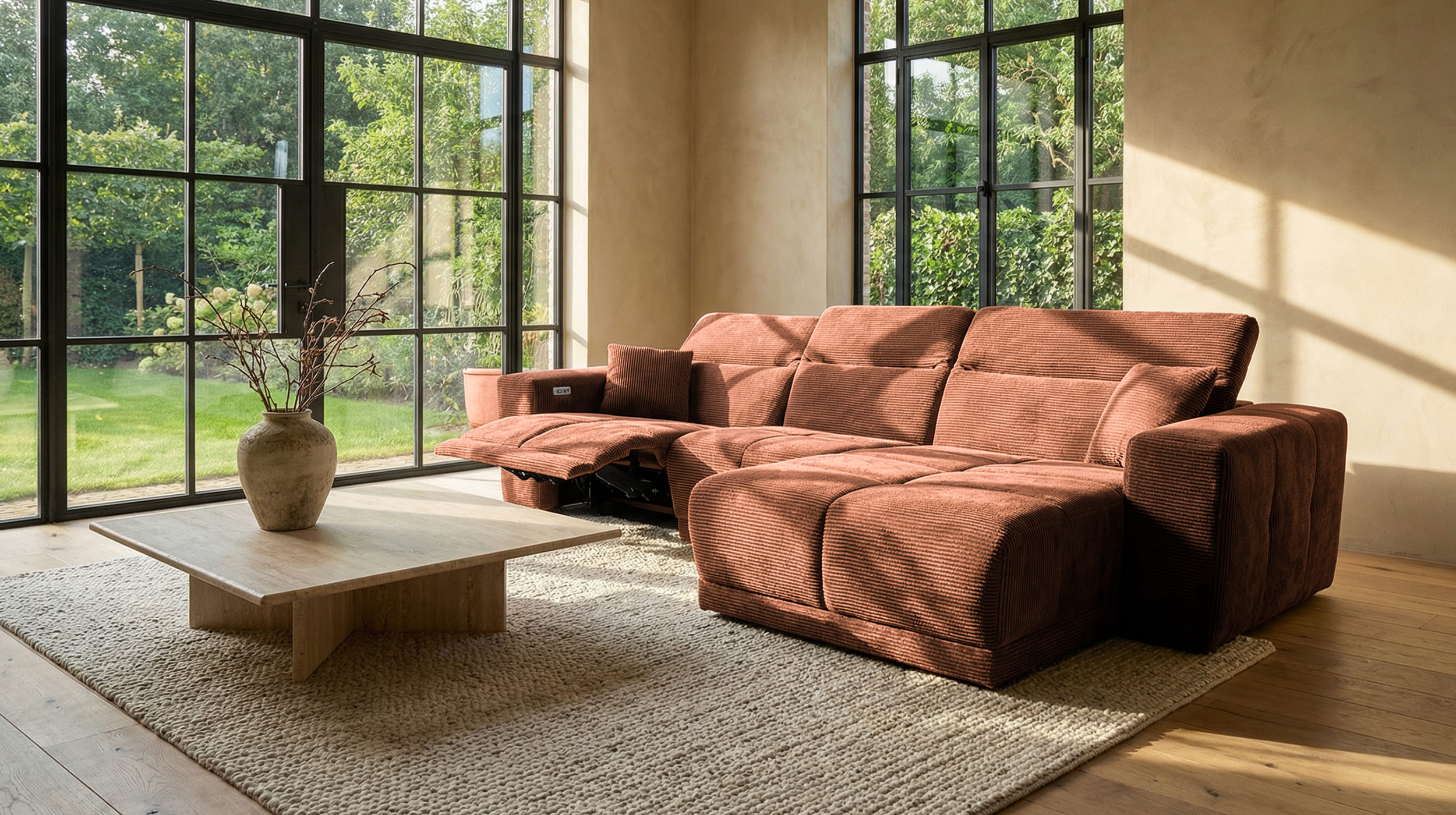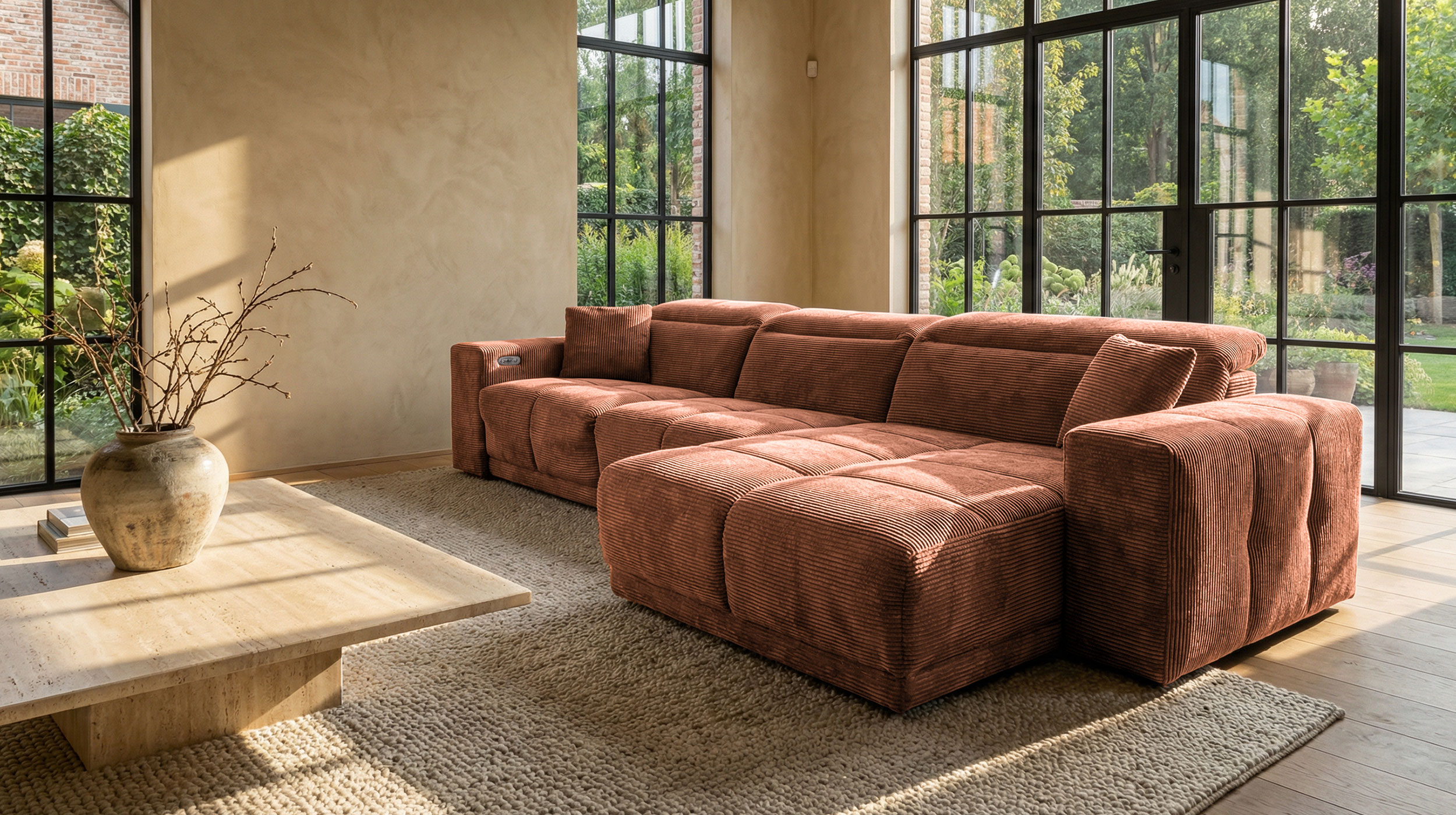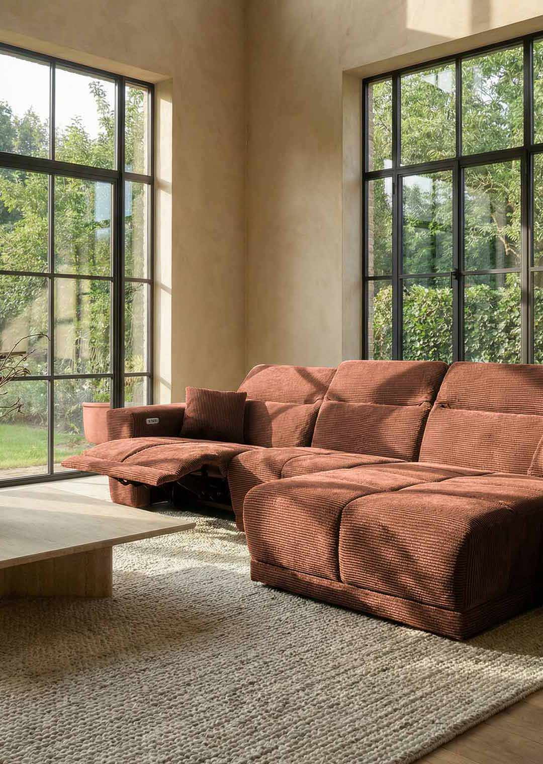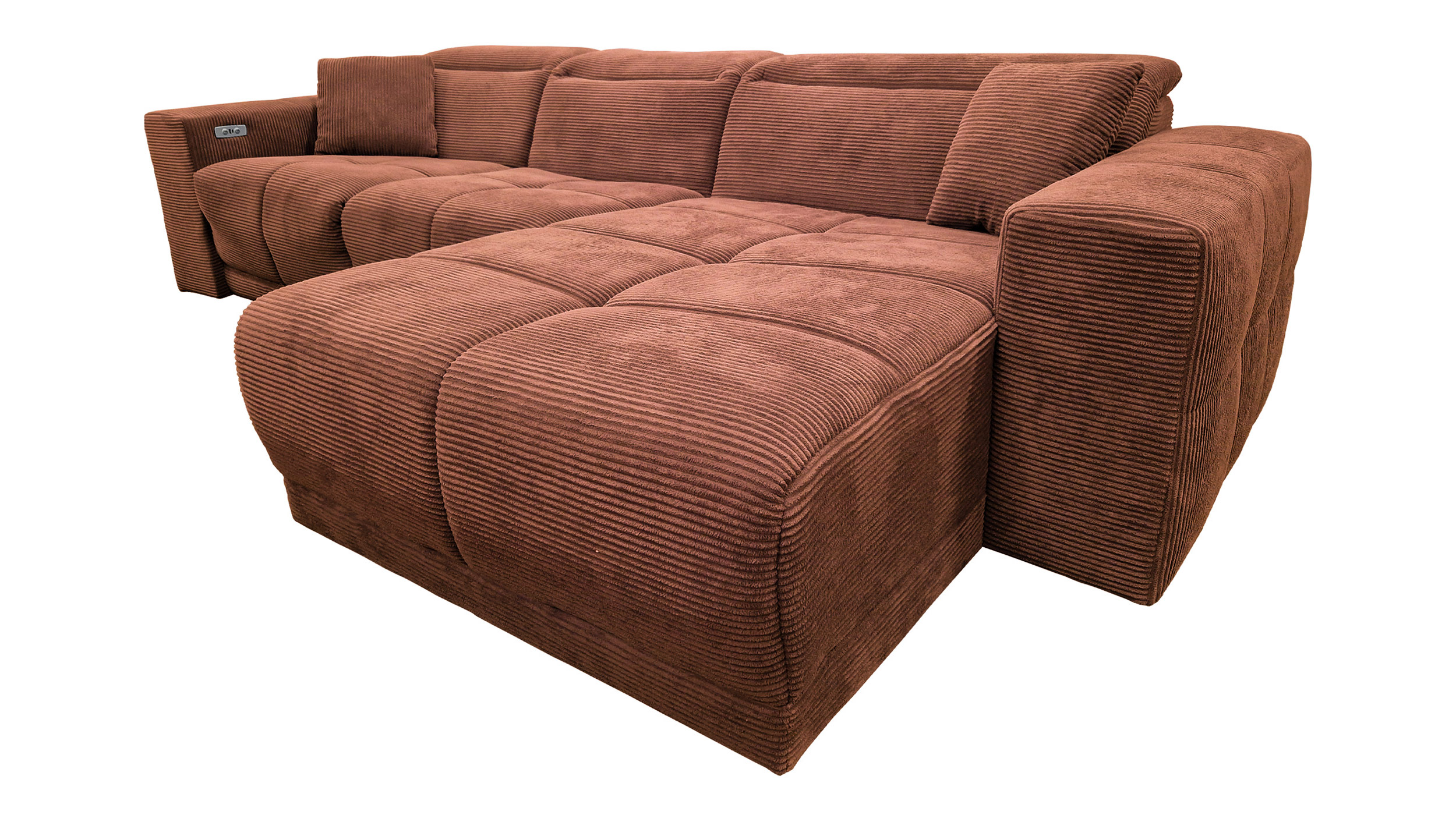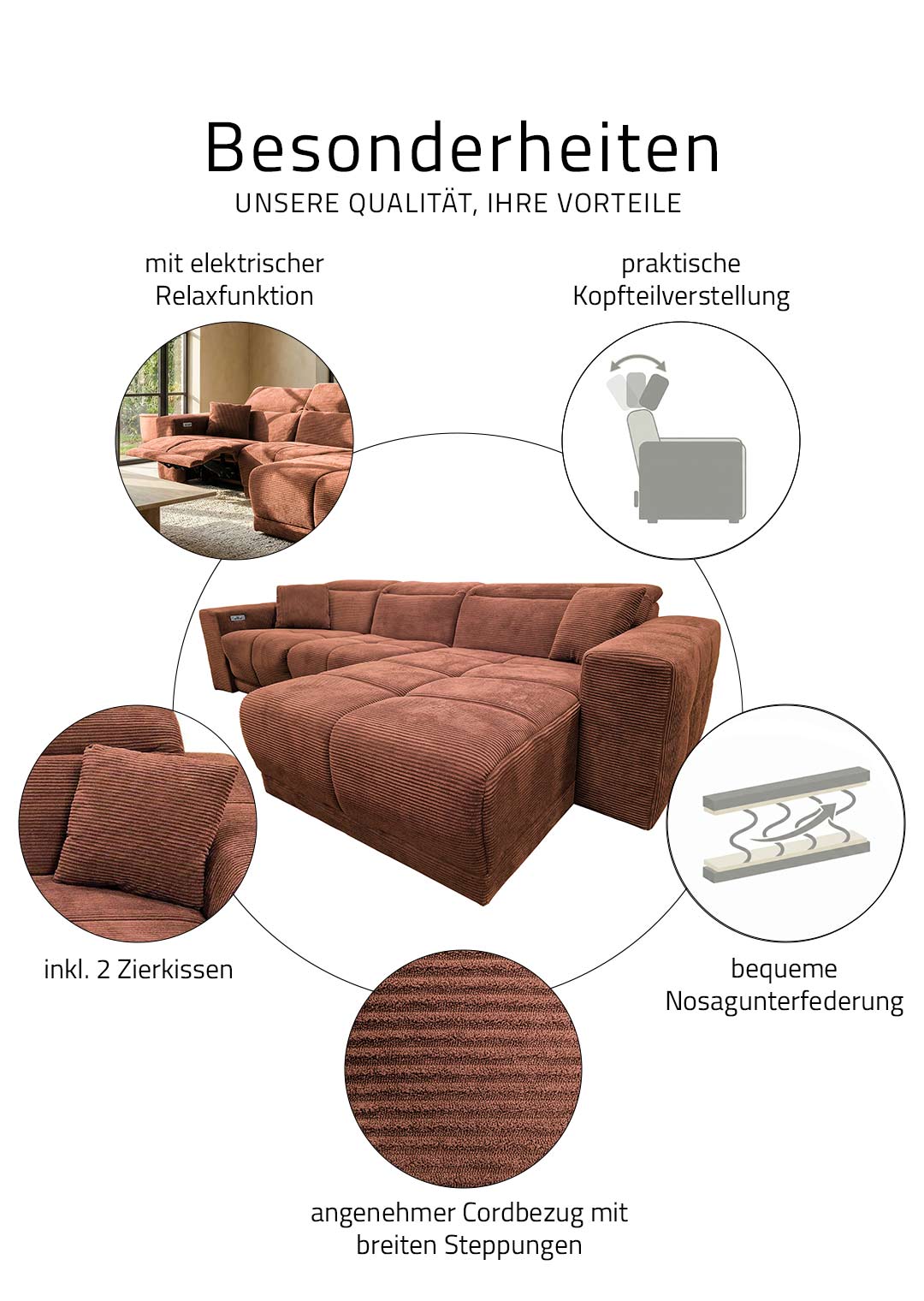 Ecksofa Cord rost 302 cm - elektrische Relaxfunktion - TONI