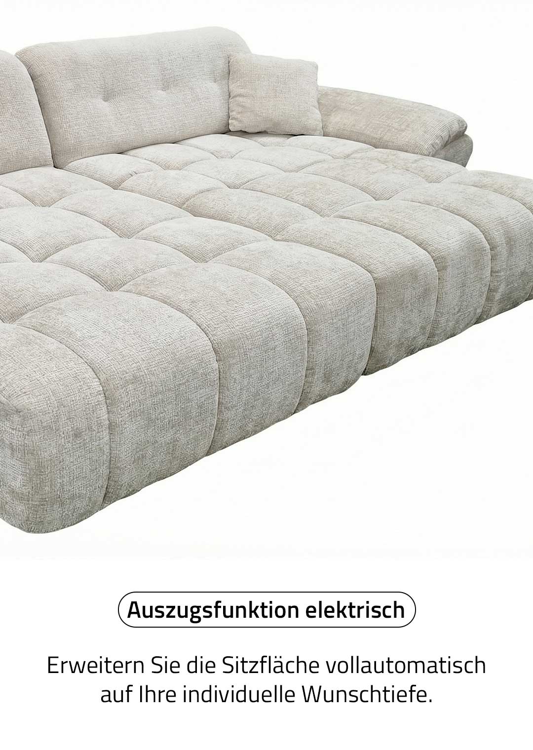 Ecksofa creme elektrisch ausfahrbar 308 cm - OT links - HUGO