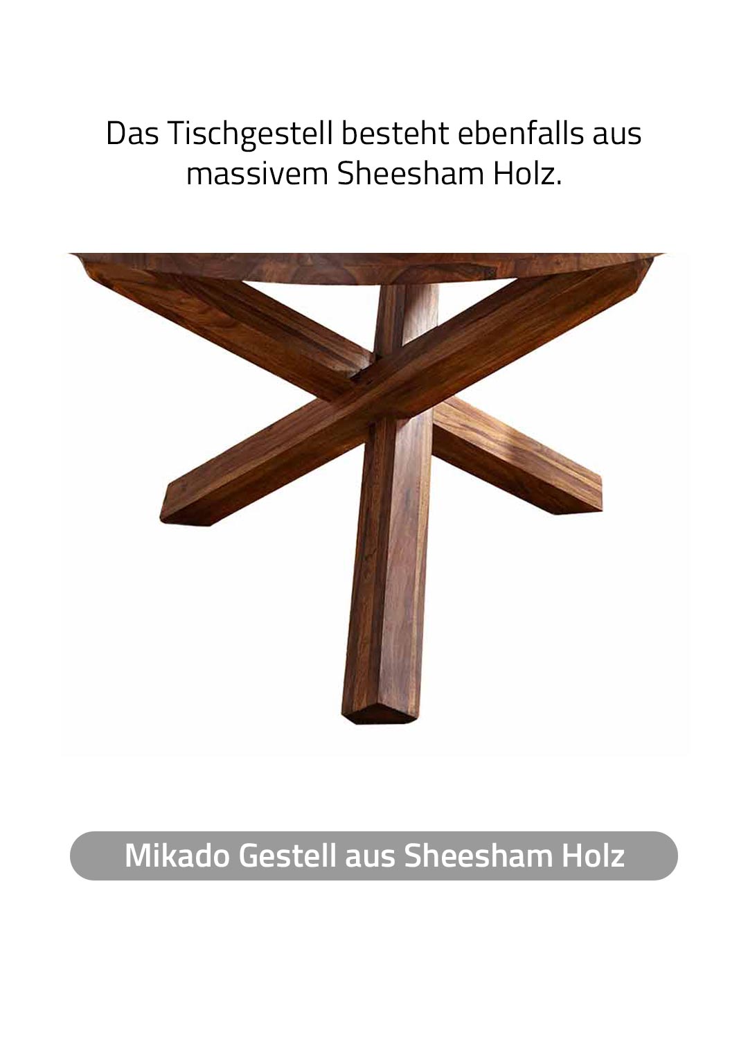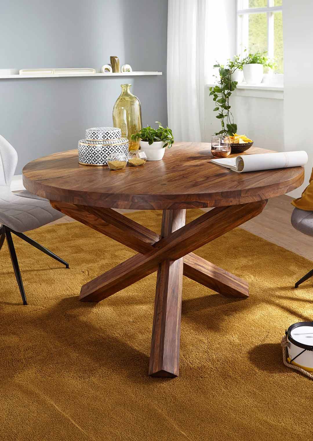 Massivholztisch rund Sheesham mit Mikado-Gestell - BARK