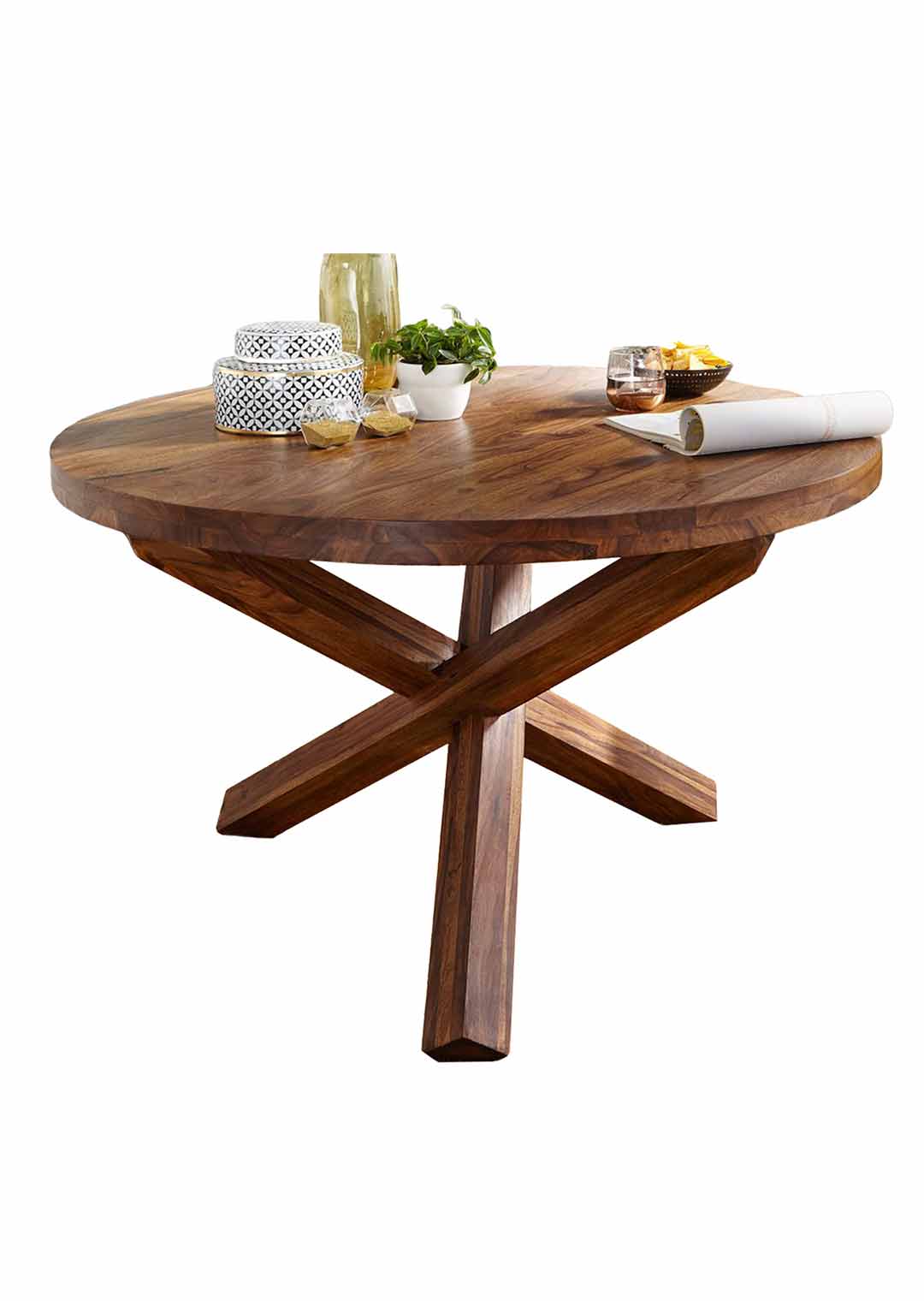 Esstisch 120 cm rund Sheesham massiv gebeizt - BARK
