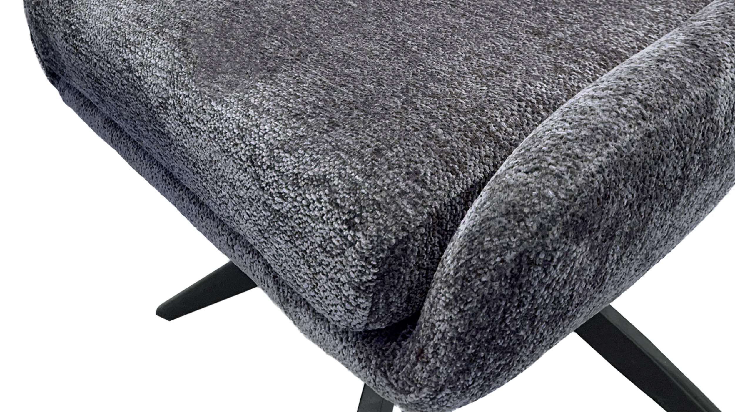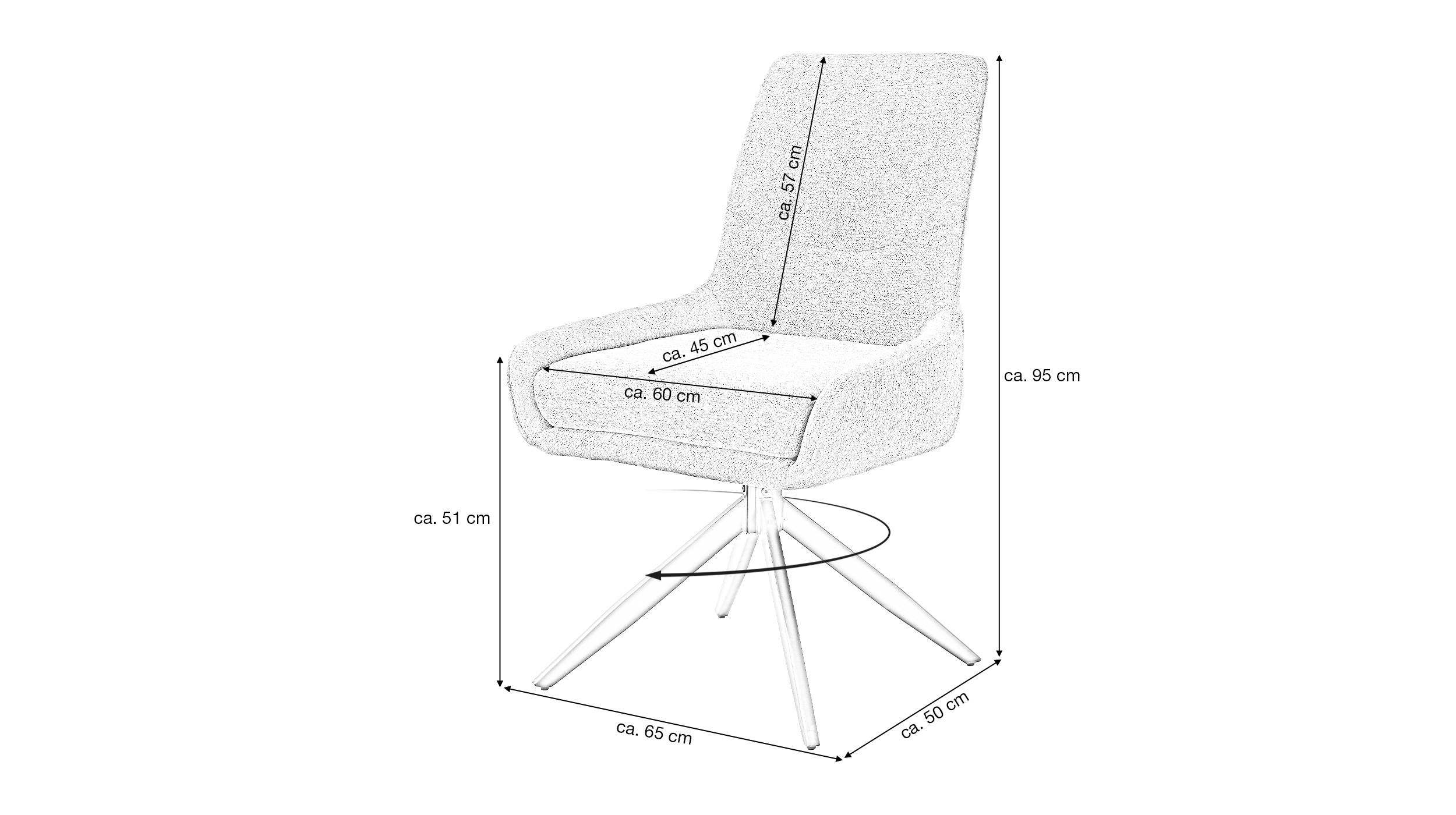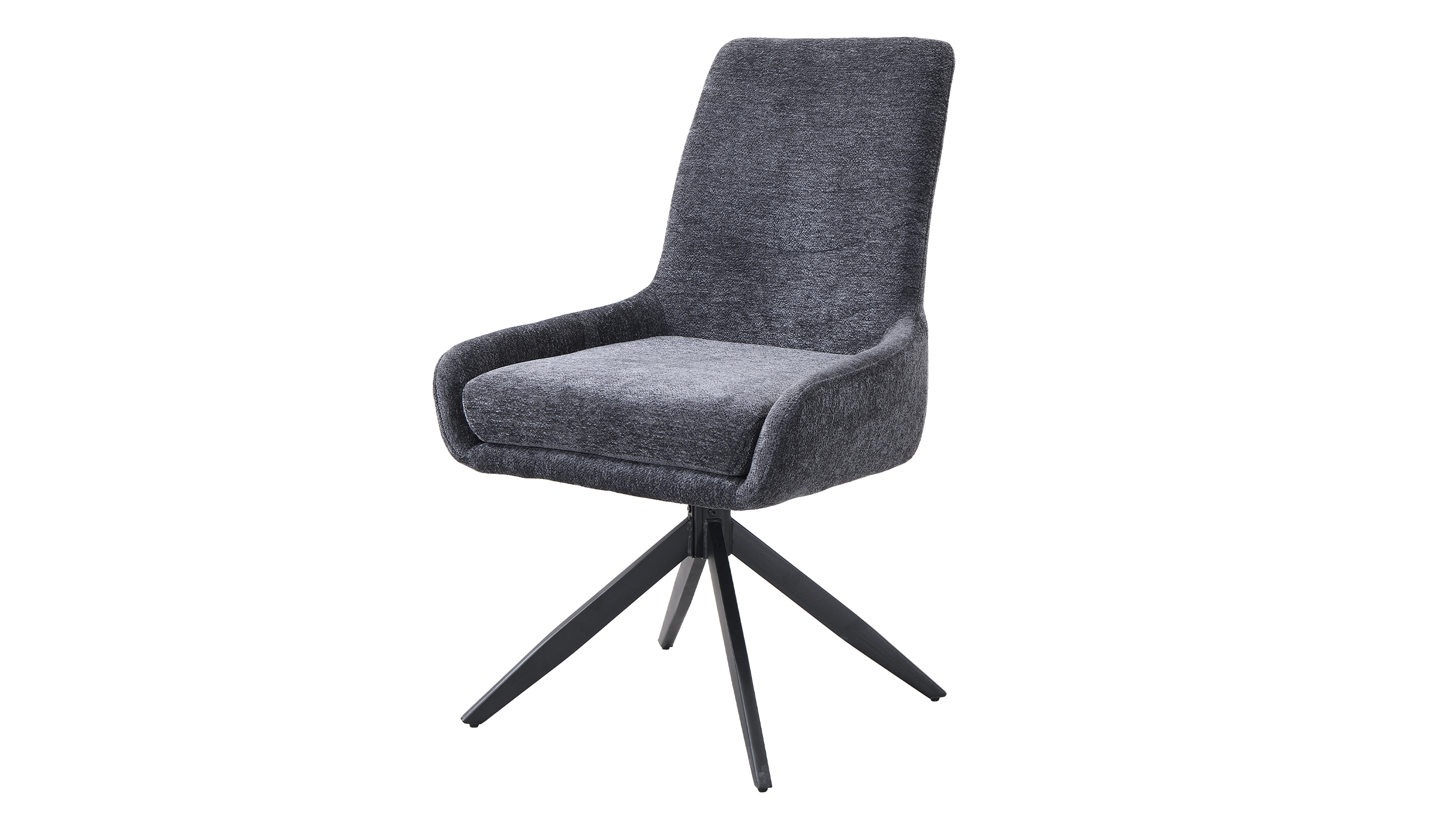 Eine trendbewusste Wahl für Ihr Esszimmer - unser Polsterstuhl JANA! Unser komfortabler Esszimmerstuhl JANA bereichert Ihr Zuhause um einen Eyecatcher in zeitgenössischer Optik in Anthrazit, wodurch ein stilvolles Ambiente geschaffen wird. Kombinieren Sie Ihn elegant zu modern gestalteten Tischen oder als dekorativen Stuhl für einen skandinavischen Touch. Der trendige Bezug in Bouclé-Stoff verzaubert mit seiner texturierten und anschmiegsamen Haptik. Bouclé-Stoff begeistert dank einer einzigartigen Oberflächenoptik, die durch ihre kunstvoll gewebten Schlingen einen einladenden Charme und zeitlose Raffinesse verströmt. Abgerundet wird die formschöne Gestaltung des Drehstuhls mit einem stabilen Metallgestell in schwarz und der angedeuteten Sitzschale. Mit der verarbeiteten Taschenfederkern-Polsterung wird ein optimales Komforterlebnis geschaffen, perfekt für ausgedehnten Spieleabenden und Abendessen mit den Liebsten. Die hochwertige Polsterung passt sich dabei angenehm an den Körper an und bietet gleichmäßige Unterstützung für eine ideale Körperhaltung. Der Esszimmerstuhl verfügt über eine praktische 360° Grad Drehfunktion, so können Sie sich Ihren Sitznachbarn zudrehen und dem Gespräch entspannt folgen. Ein Metallgriff an der Rückenlehne ermöglicht müheloses Drehen und Anheben um die Positionierung um Ihren Tisch zu vereinfachen. Genießen Sie langanhaltenden Komfort und lehnen Sie sich entspannt zurück. Bestellen Sie jetzt Ihren neuen Polsterstuhl direkt online in unserem Shop oder besuchen Sie uns in einer unserer Filiale vor Ort.Wir freuen uns auf Sie!| Produktdetails: | |