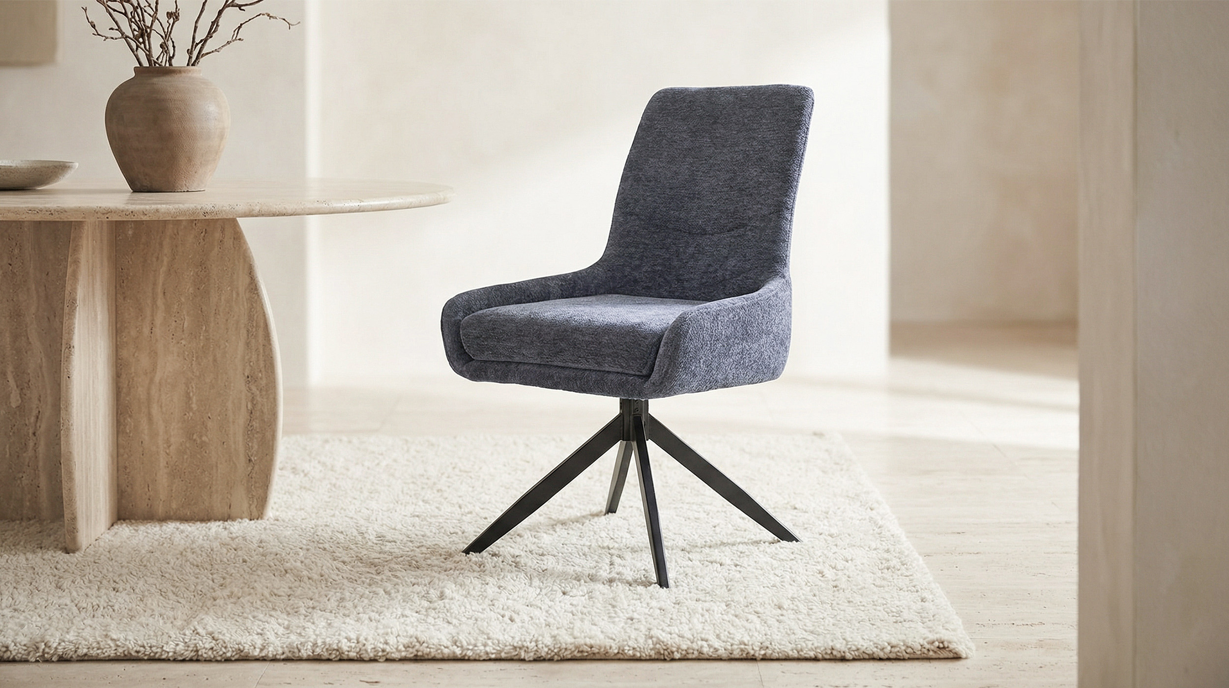 Der Stuhl sieht nicht nur stylisch aus, sondern ist auch super praktisch. Die 360° Drehfunktion ist total angenehm, vor allem bei Familienessen. Auch das Anheben mit dem Griff an der Rückenlehne klappt problemlos.