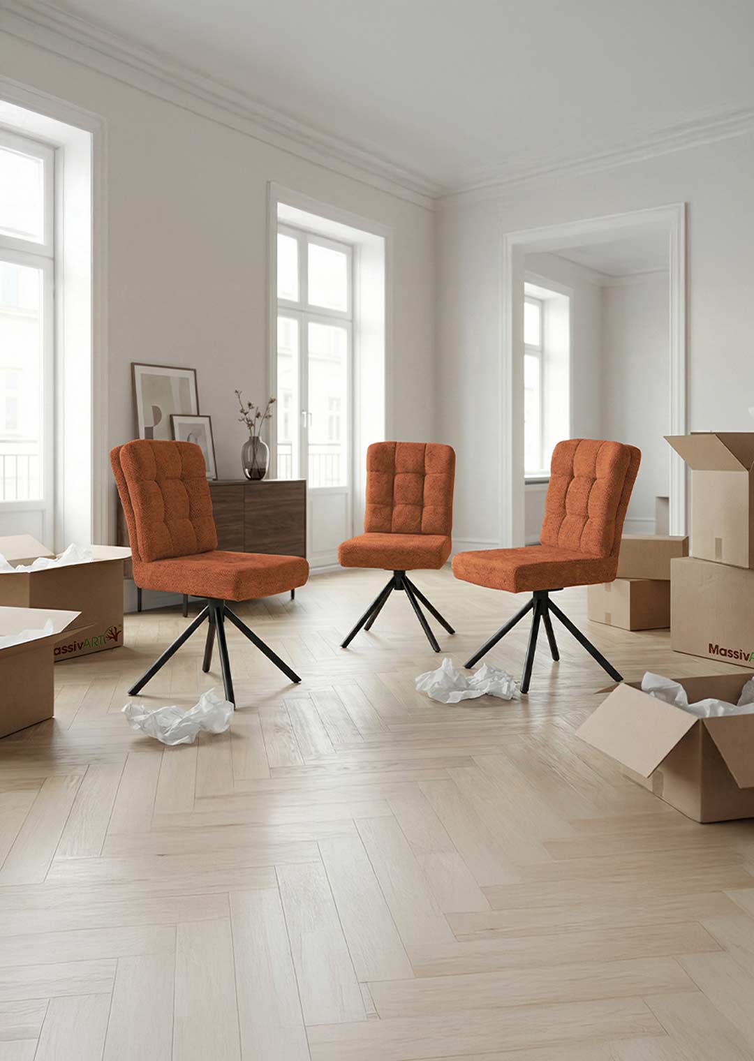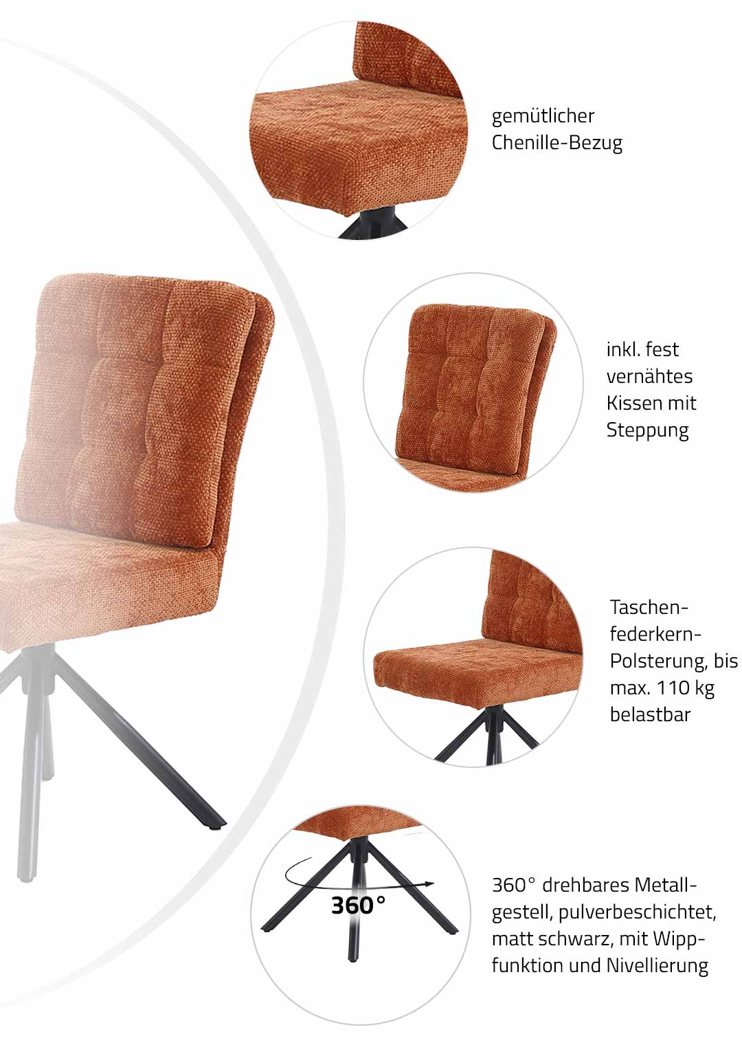 Polsterstuhl orange Drehstuhl Taschenfederkern Chenille - HEDIA