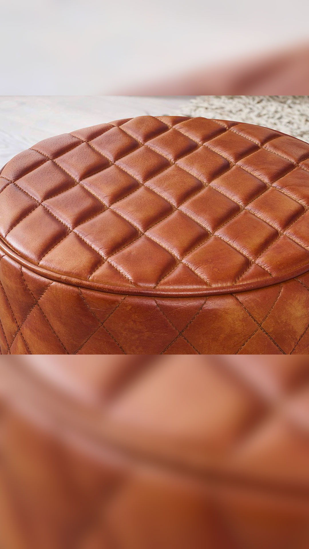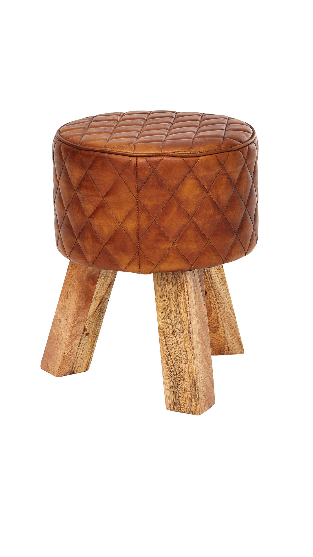 Sitz- & Fußhocker rund Echtleder braun - Mango massiv - RIST