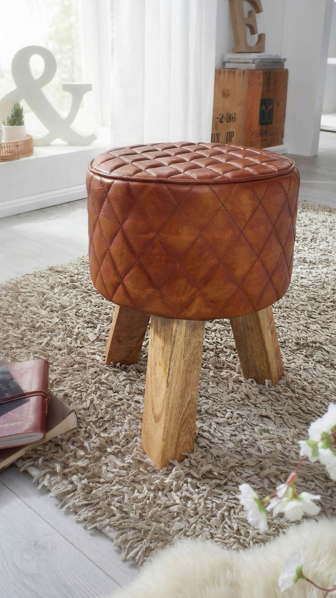 Der Sitz- und Fußhocker RIST vereint modernes Design mit traditioneller Handwerkskunst und wird so zu einem stilvollen Statement in jedem Wohnraum. In liebevoller Handarbeit gefertigt aus echtem Ziegenleder in einem warmen Braunton und robustem, lackierten Mango Massivholz, bringt er eine harmonische Verbindung aus Luxus und Natürlichkeit in Ihr Zuhause - jedes Stück ist ein Unikat! Schräg angesetzte Beine aus Massivholz Mango geben dem Sitz- und Fußhocker nicht nur Stabilität, sondern verleihen ihm auch eine moderne, leicht skandinavische Anmutung. Die aufwendig gesteppte Lederoberfläche sorgt nicht nur für einen besonderen Blickfang, sondern bietet auch angenehmen Sitzkomfort.