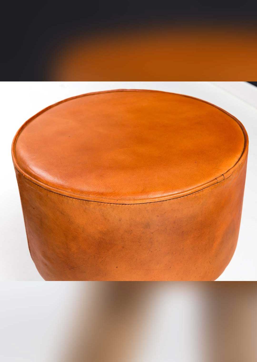 Sitz- & Fußhocker rund Echtleder braun Mango massiv - SILVAS