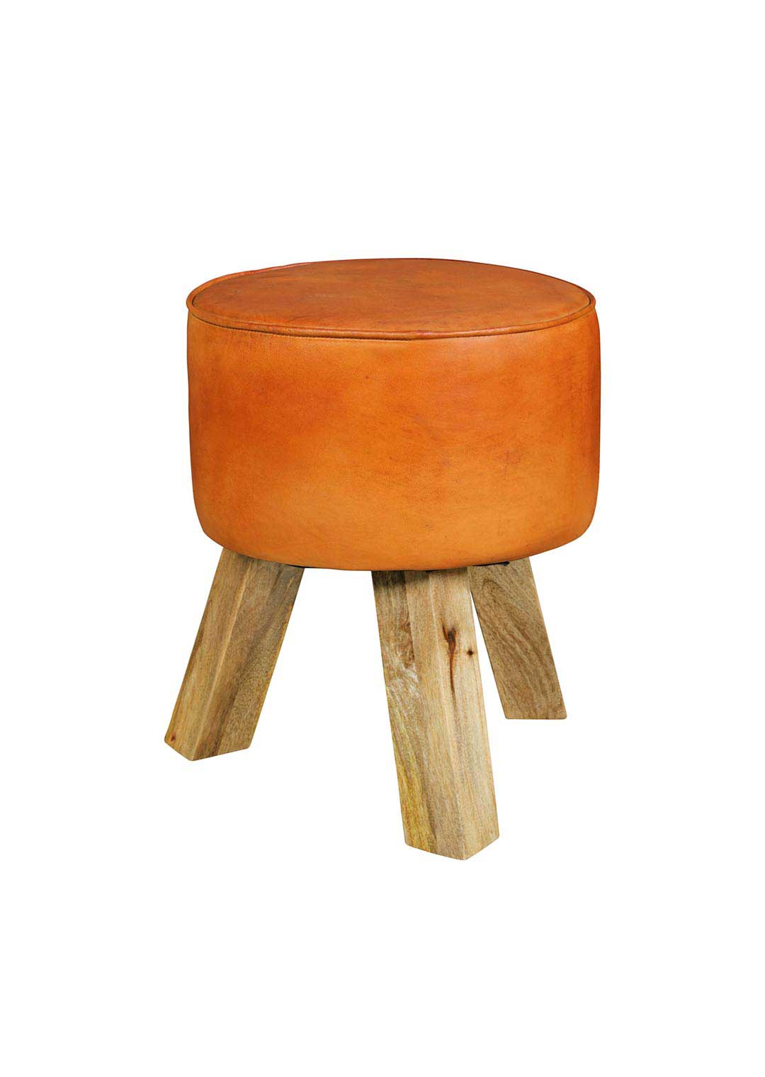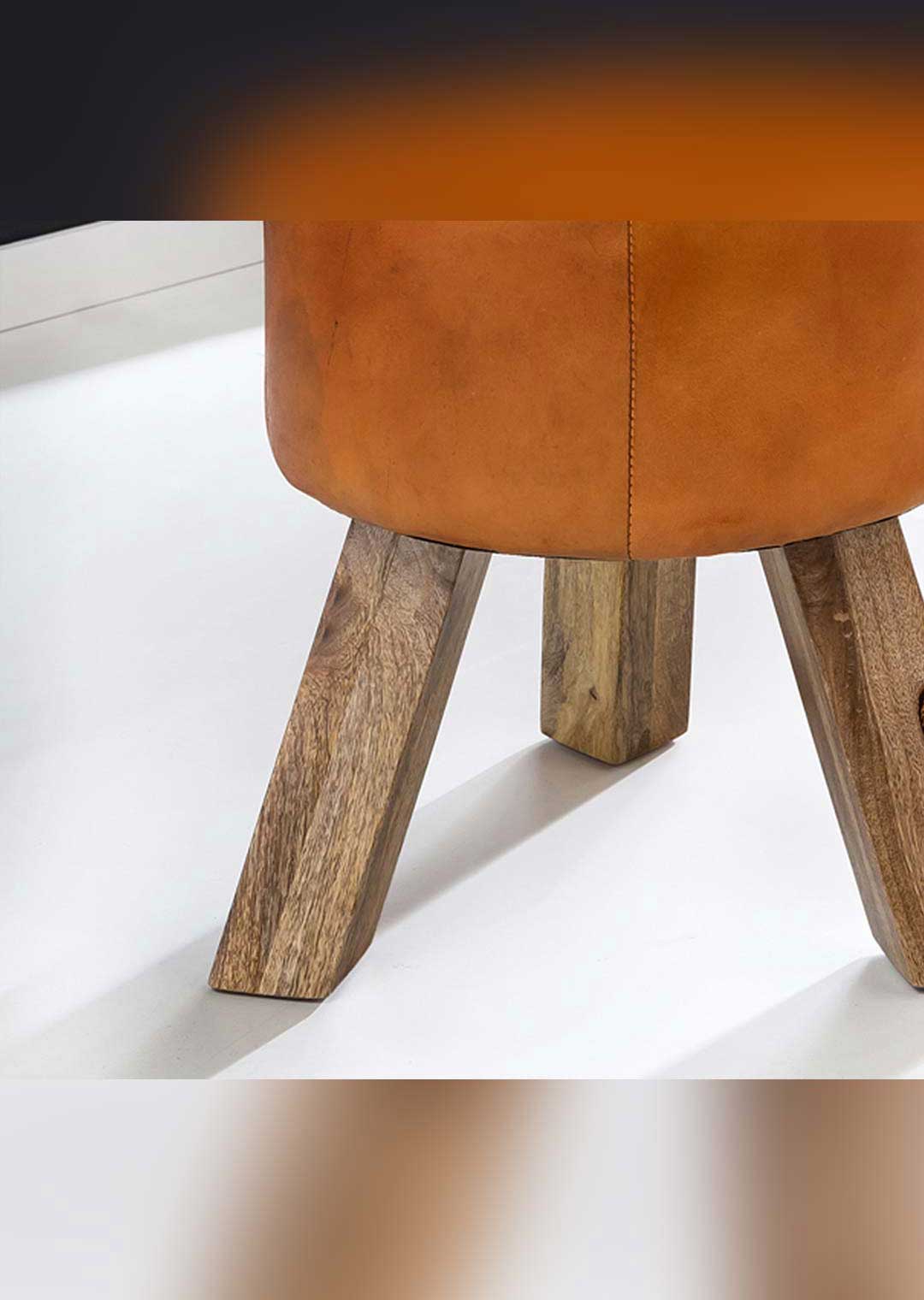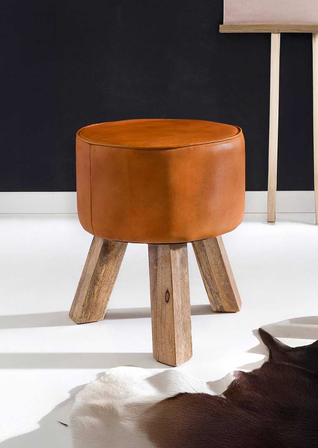 Vintage-Flair aus Ziegenleder und Mangoholz - unser Sitz- und Fußhocker SILVAS!